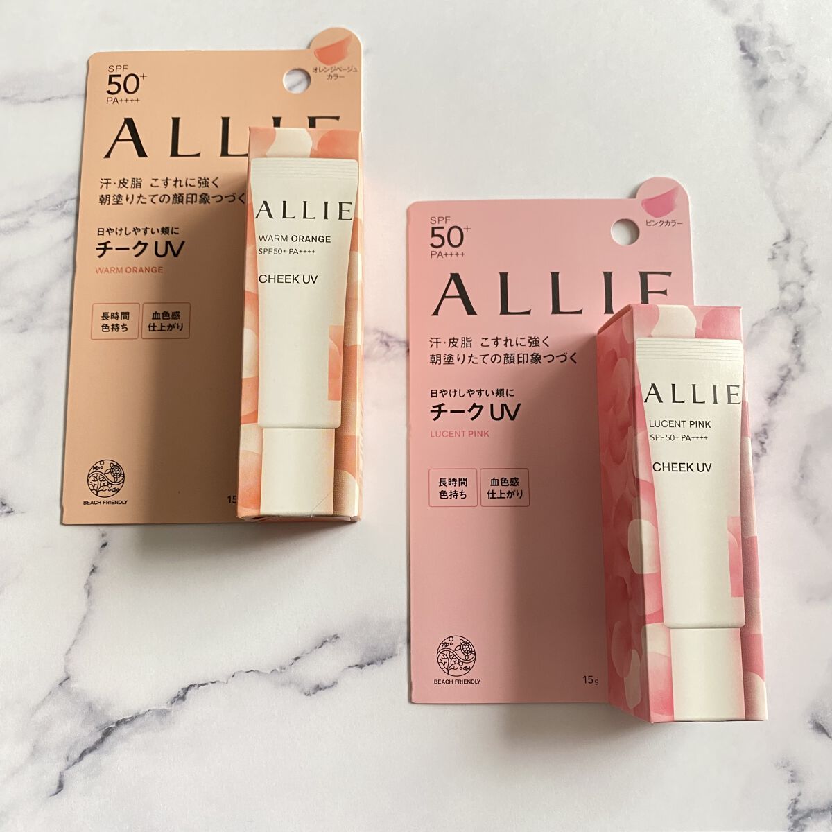 - ◆紫外線を浴びやすい、頬に使えるチークUV/鼻・頬に使える追いツヤUV ◆メイクの上から塗り直しとしても使える。 ◆汗・皮脂 マスクやタオルなどのこすれにも強く落ちにくい。 ◆「カラーUVヴェール技術」で、ベースメイクと混ざりにくく均一に密着。 SPF50+と感触の良さはそのままに素肌を活かした自然な色づきを両立! ◆8時間色持ち データ取得済み ※アリィー調べ。効果には個人差があります。 <基本情報> ・強力UV カット(SPF50+・PA++++) ・フリクションプルーフ:タオルやマスク等のこすれにも強く、落ちにくい ・スーパーウォータープルーフ:汗・水に抜群※²に強い機能 ※² アリィー商品内において LUCENT PINK(チーク 01) 自然に色づき血色感仕上がりの‟透け感ピンク” パッケージもピンクで、ポーチの中も華やぐメイクアイテムです WARM ORANGE(チーク 02) ヘルシーな血色感仕上げの‟じんわりオレンジ” じんわ~りと血色感を与えてくれるから、素肌を活かした自然な仕上がりに TRANSLUCENT(ラスター) ツヤ感を演出する‟シマーカラー” 鼻や頬にハイライトとして使うことで長時間ツヤが持続します