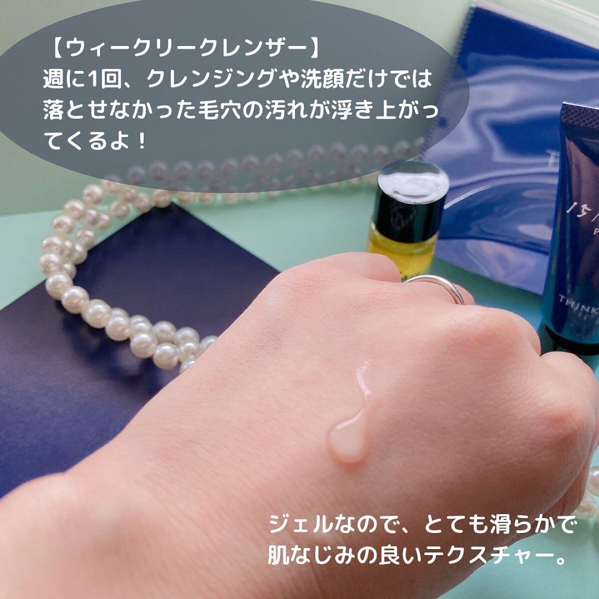 二層式の化粧水は「化粧水層」と「オイル層」をバランスよく配合。 サラサラとした軽めのテクスチャーですがハンドプレスで馴染ませるととてもしっとり、もちもちの肌に導いてくれます。 ウィークリークレンザーはクレンジングや洗顔で落とせなかった汚れを週に一度15分間なでるケアとして使用するとポロポロと汚れが浮き上がってくるのでまだこんなに汚れていたんだ!とびっくりします。 香りもビターオレンジやベルガモット・ローズマリーをベースとしたリラックスタイムを演出してくれるものとなっています。 テクスチャーはとても滑らかでマッサージするときの肌への摩擦がかからないようにと考えられたものになっていて気持ちよくてずっとなでていたくなります♡