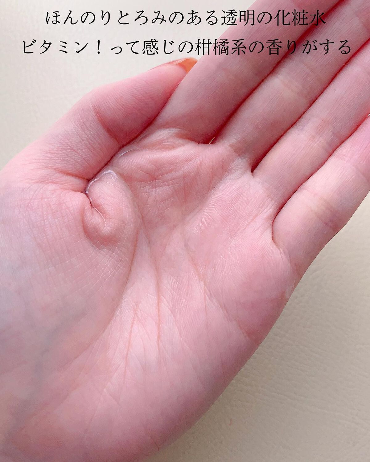 爽やかな柑橘系の香りが🍋 ビタミンしっかり含まれている感あるな〜と思っていたらそれもそのはず、史上最高濃度の高浸透ビタミンC (APPS)が配合されていて角層までしっかり届けてくれるらしい! 化粧水ぬっただけなのに「スキンケア全部終わらせたっけ?」ってくらいツヤツヤなお肌に仕上げてくれる。 乾燥、乾燥くすみが気になる人はもちろんツヤ肌を目指している人にぜひ使ってほしい化粧水🙌🏻💫