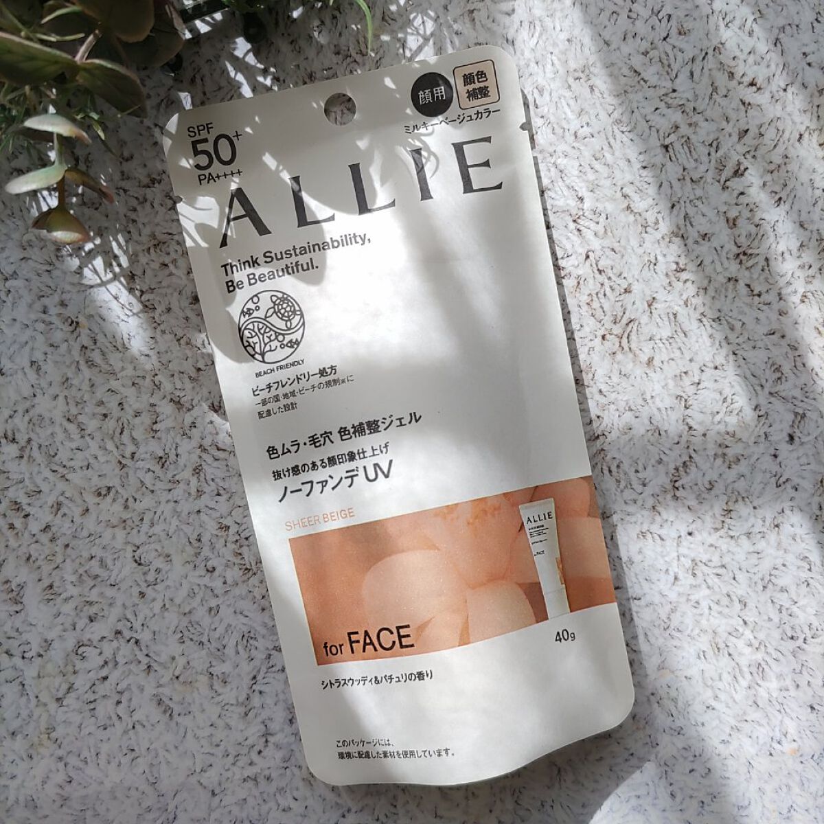 - 世界を想う 美しさつづく*1 日やけ止め おでかけも、マスクを外す機会も増える毎日に。 一部の国・地域・ビーチの規制に配慮した設計のビーチフレンドリー処方。 これ 1 本で、UV カット&顔色補整効果でクマ・くすみ・色ムラまでカバー! テカりにくく、くずれにくいノーファンデ UV*2 【ENNUI PURPLE】 くすみや毛穴をカバー 儚げな透明感のある顔印象続く 澄んだ気分を誘う 紫陽花しずく&セージの香り 【SUNNY APRICOT】 クマや毛穴をカバー いきいきとした血色感のある顔印象つづく 思わず出かけたくなる アプリコット&金木犀の香り 【SHERR BEIGE】 色ムラや毛穴をカバー 均一で抜け感のある顔印象つづく 自然で飾らない シトラスウッディ&パチュリの香り ●一部の国・地域・ビーチの規制に配慮した設計の「ビーチフレンドリー処方」 ●SPF50+・PA++++ ●汗・水 こすれに強く落ちにくい フリクションプルーフ・スーパーウォータープルーフ ●ベタつきにくい感触がつづく ●テカりにくくキレイな肌仕上がりがつづく ●環境に配慮した素材を使用したパッケージ採用 ●美容液成分(保湿)ヒアルロン酸Na配合 ●顔用 ●普段のメイククレンジングで落とせる ●マスク・タオル等につきにくい ●化粧下地効果 *1 スキンケア効果またはメイクアップ効果による肌仕上がりのこと *2 ファンデーション未使用時でも、自然なベースメイクが仕上がる日やけ止めのこと *3 チリ・ほこり・PM2.5・花粉等すべての微粒子汚れの付着を防ぐわけではありません 01:ENNUI PURPLE パープル 02:SUNNY APRICOT アプリコットピンク 03:SHEER BEIGE ミルキーベージュ