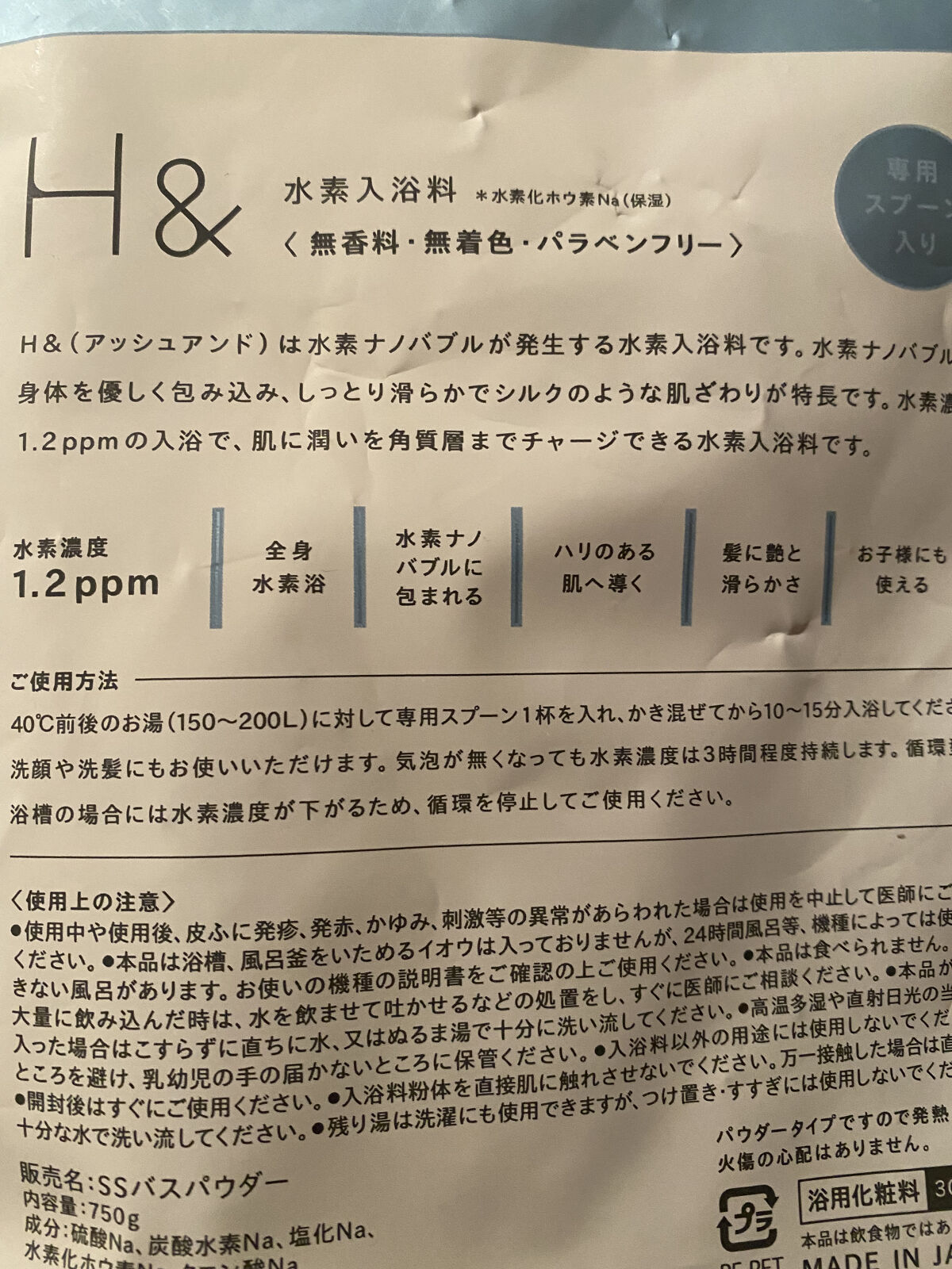商品詳細情報H& アッシュアンド 水素入浴剤