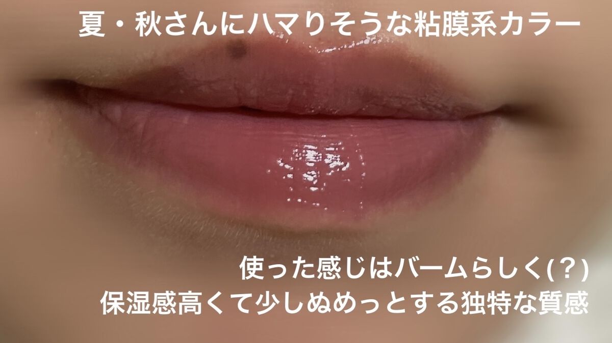 - もちっとした水膜で弾けそうなツヤリップ 1.軽い塗り心地のなめらかで透明な水爆弾ツヤ 2.塗った瞬間から唇を鮮やかに彩る多彩なカラーバーム 3.植物性保湿オイルでしっとりもっちり保湿バーム