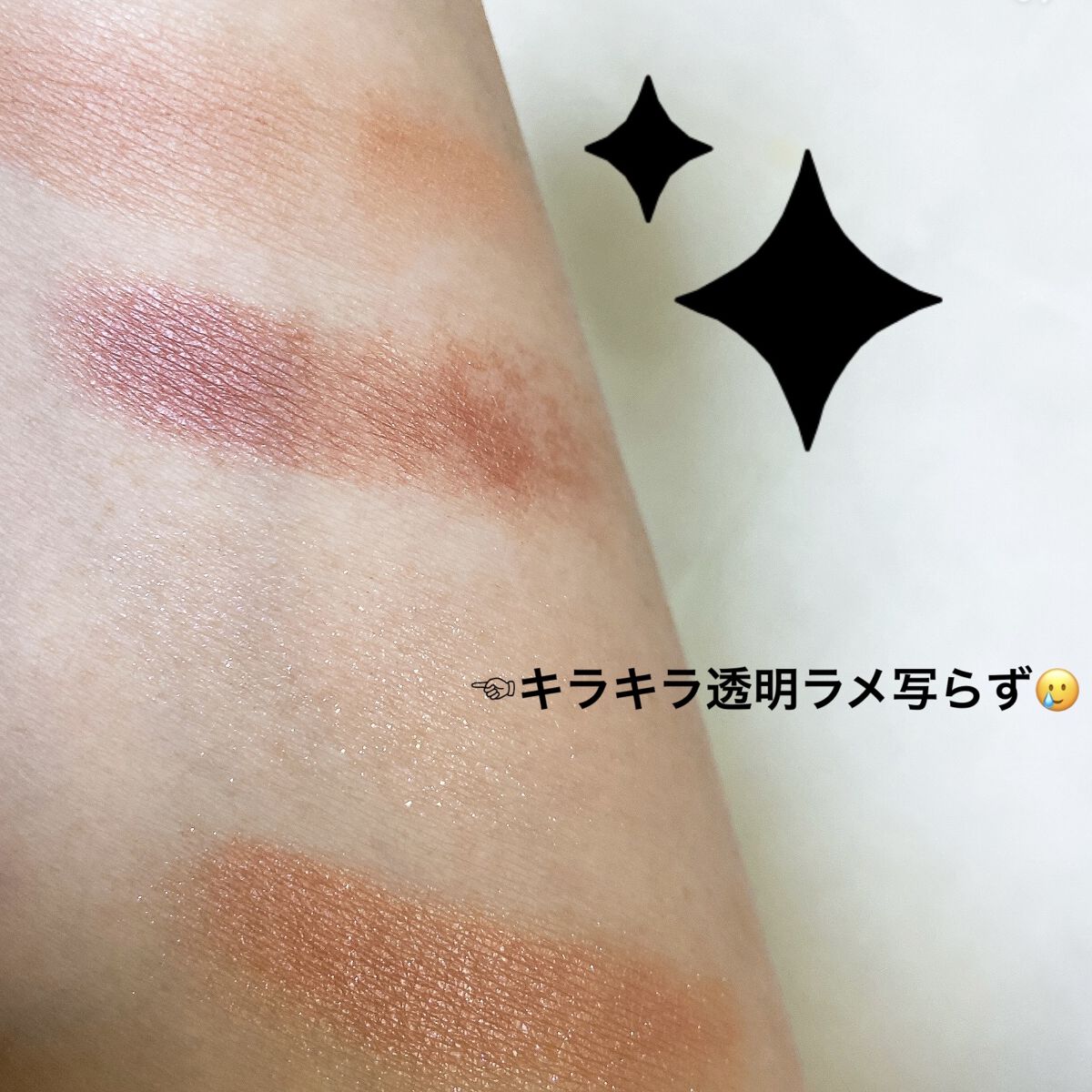 ゴールドラメ入りのピンクとかコーラルでめっちゃ使いやすい! そして可愛いー! 絶対似合わないと思いながら買ったのにつけてみたら発色はかなり可愛いですゥ。 心なしか肌が明るく見えてますゥ。 KATEの公式のスウォッチ見てみて! 公式なだけに1番色がわかりやすいので!