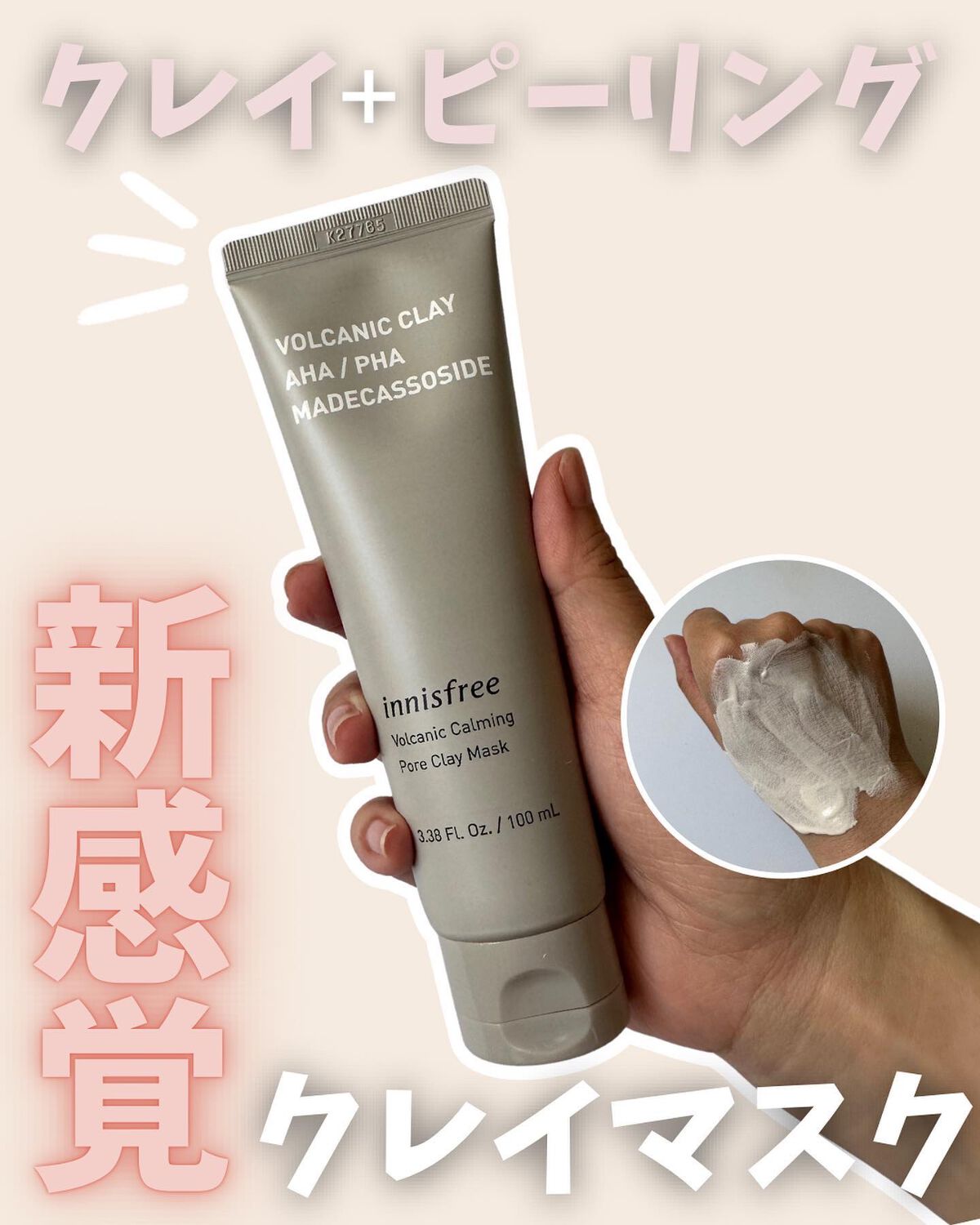 イニスフリーの『ヴォルカニックカーミング ポアクレイマスク』をお試しさせていただきました🤍この商品は、クレイ(吸着)成分+ピーリング成分の配合された新感覚のクレイマスクで、皮脂や毛穴にアプローチしてくれるよ✨私は普段クレイマスクとかは、スペシ...