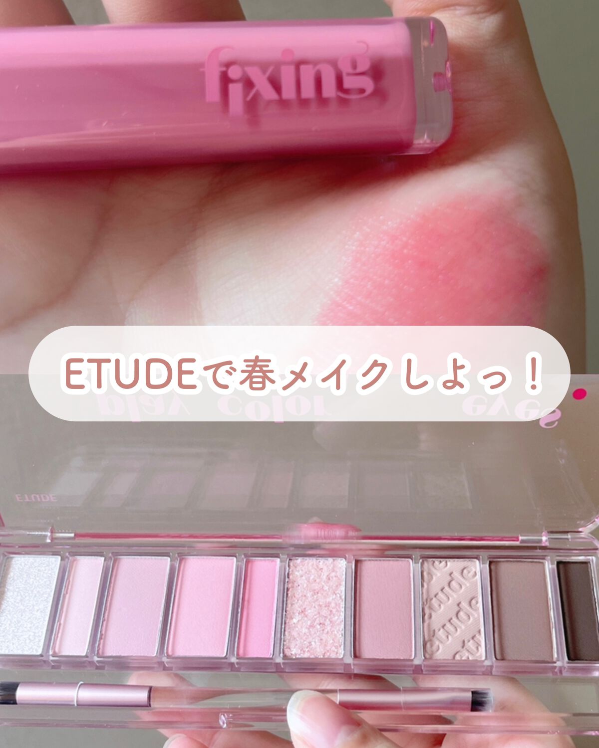 \ETUDEで作る儚げ透明感メイク/ETUDEぽよんアイメイカードキドキチェインジソフトフィクシングティントこれはラブ/ときめきピンクぽよんアイメイカーはハート型チャームが可愛いハイライトとマットの2層パレット。アイシャドウだけでなくハイライ...