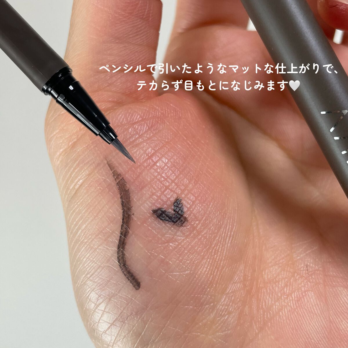 - ペンシルで引いたようなマットな仕上がりで、テカらず目もとになじむからメイクが浮くことなく、簡単に美しいラインを引くことができるリキッドアイライナー。水・汗・皮脂に強いWプルーフ*処方なのに、色素沈着しにくい着色料を使用、お湯で簡単にオフできます。まぶたにつきにくい速乾タイプ。 * ウォータープルーフ、スマッジプルーフのこと(自社調べ。効果には個人差があります)