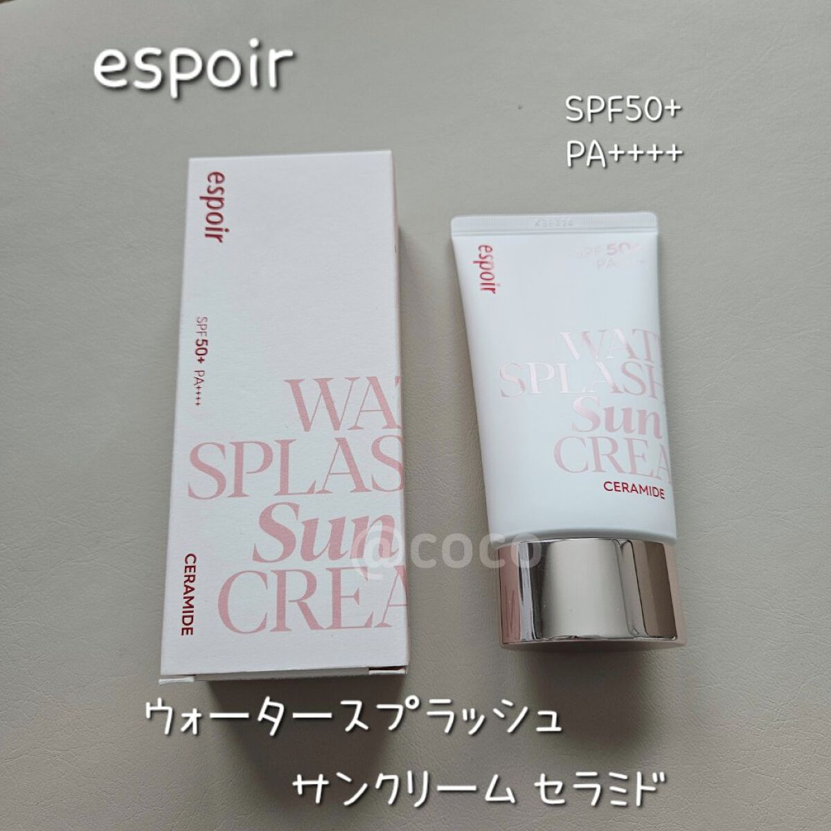 espoir日焼け止め🤍🤍🤍🤍🤍🤍🤍🤍🤍🤍『よいけどベタベタするよトーンアップ感』娘💗言ってたespoirウォータースプラッシュサンクリームセラミド60mlエスポア下地気になってる方はチェックしてみてください※個人の感想です#espoir#ウ...