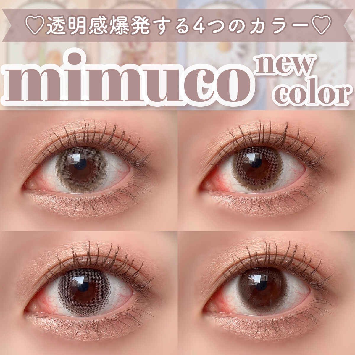 - ※2025年6月以降、商品パッケージ裏面・側面の一部表記を順次変更いたします。尚、これにかかる商品の交換・返品は承っておりません。 裸眼の色が明るい「茶目さん」、暗めな「黒目さん」、どちらの瞳の方が着けても不自然にならずあか抜けるレンズ。 日常使いしやすいブラウンベースのレンズをはじめ、肩ひじ張らずに可愛くなれるナチュラルなレンズとなっております。 ■mimuco ふんわり透明感セット キャラメルスフレ/ブラウンフォンデュ/メープルミルクティー/ポムカヌレ(各2枚入り) ■mimucoちゅるん透明感セット ゼリーグレー/シュガードーナツ/メローストロベリー/ピュレグレージュ(各2枚入り) カラーコンタクトレンズの不適正使用による眼障害の危険性等などがあります。 ●コンタクトレンズは高度管理医療機器です。不十分な洗浄・消毒など不適切なケアや、長時間・交換期間を超えた装用により、アレルギー性結膜炎、角膜感染症、角膜潰瘍等の重篤な眼障害が発生する危険性があります ●ご使用前に取扱説明書を確認してください 使用上の留意事項 ●眼科医院等を受診してからお求めください ●眼に異常を感じたら直ちにレンズ使用を中止し、お近くの眼科等で診察を受けてください ●医師の指示にしたがってご使用ください ●コンタクトレンズを装用する場合、自覚症状がなくても、眼科医院等での定期検査を受けてください ●レンズに不具合がある場合は使用しないでください