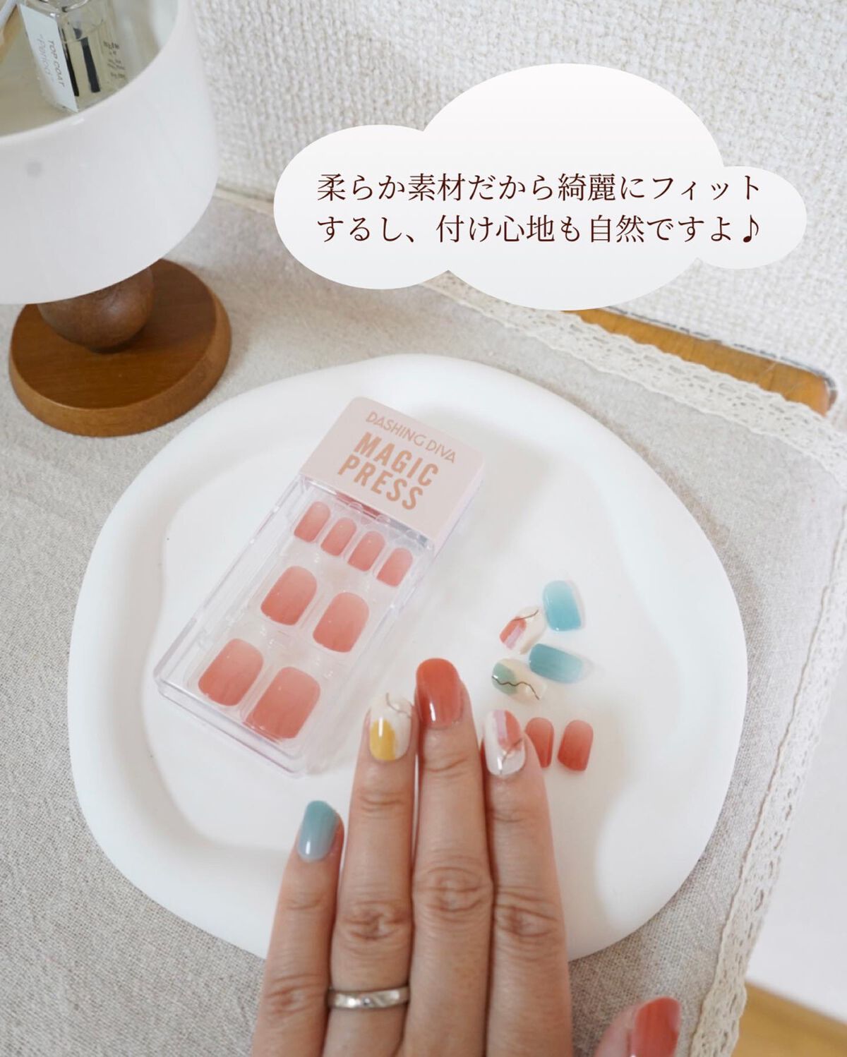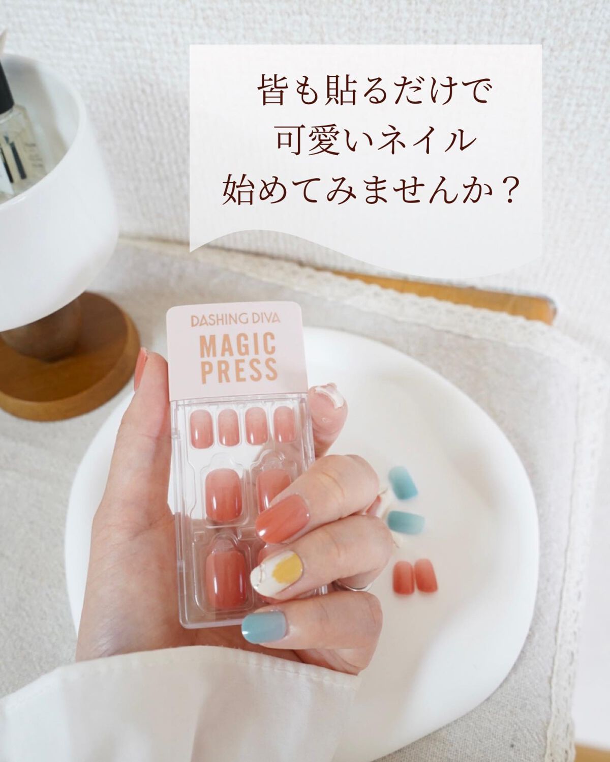 時短!硬化や乾かす必要なし!貼るだけ簡単ネイルチップ ダッシングディバ『MAGIC PRESS』はデザインのみならず、世界特許を取得した構造で付け心地の良さも魅力の一つですが『接着剤不要』『12サイズで30枚入』 落ち着いたグレーカラーとパール感たっぷりのガラスデザインに、細いグリッターフレンチが輝く指先を演出するガラスネイルチップ✨ 30枚全てのネイルチップの裏に両面テープが付いているから、不器用な私でも簡単に装着できてネイルを楽しめています🫶🏻