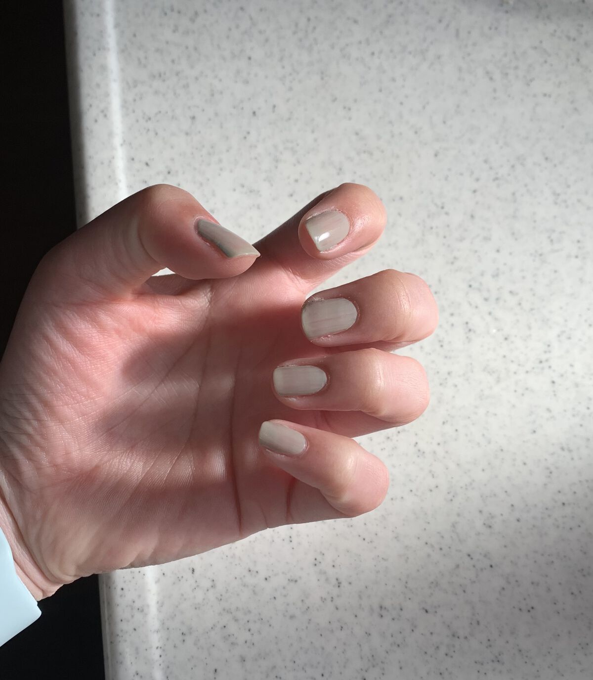sopo 06アクアプールセルレで購入。室内灯だとブルーグレー🩶自然光で見るとブルーとグリーンが混ざったような綺麗な色🥹💘陽が当たるとよりラメが綺麗だったのですがうまく写真に収めることができませんでした‥一度塗りだと透け感はあるのですがムラに...
