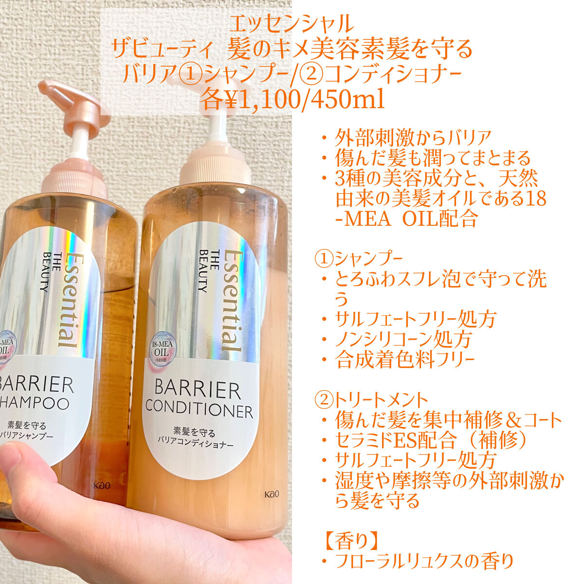 商品詳細情報エッセンシャル ザビューティ 髪のキメ美容素髪を守る バリアシャンプー/コンディショナー