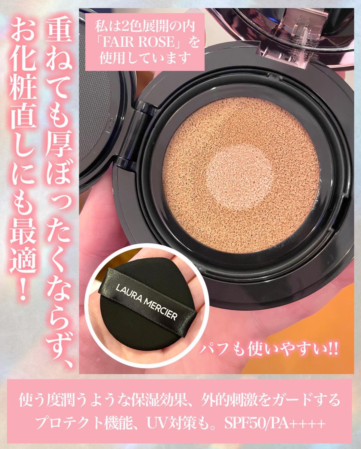 リピート3回目で大のお気に入り💓 適度にカバーしながらもナチュラルで、隠してます!というより、元から肌綺麗です!という感じに仕上がります☺️ テクスチャーはみずみずしく、クッションなのに全然乾燥しません。 むしろもちっとした肌になります。 肌にぴたっと密着して崩れにくいので、マスクとも相性いい🙆♀️