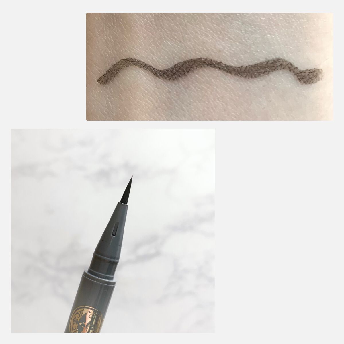 黒目くっきり 肌浮きせずに濃密発色 書きやすい極細筆 ブルーグレーらしいのですが透け感のある黒といいますかTheグレーではないので使いやすい👍 ヨレないしこすっても落ちないのにお湯オフ出来るのが嬉しいポイント🙌