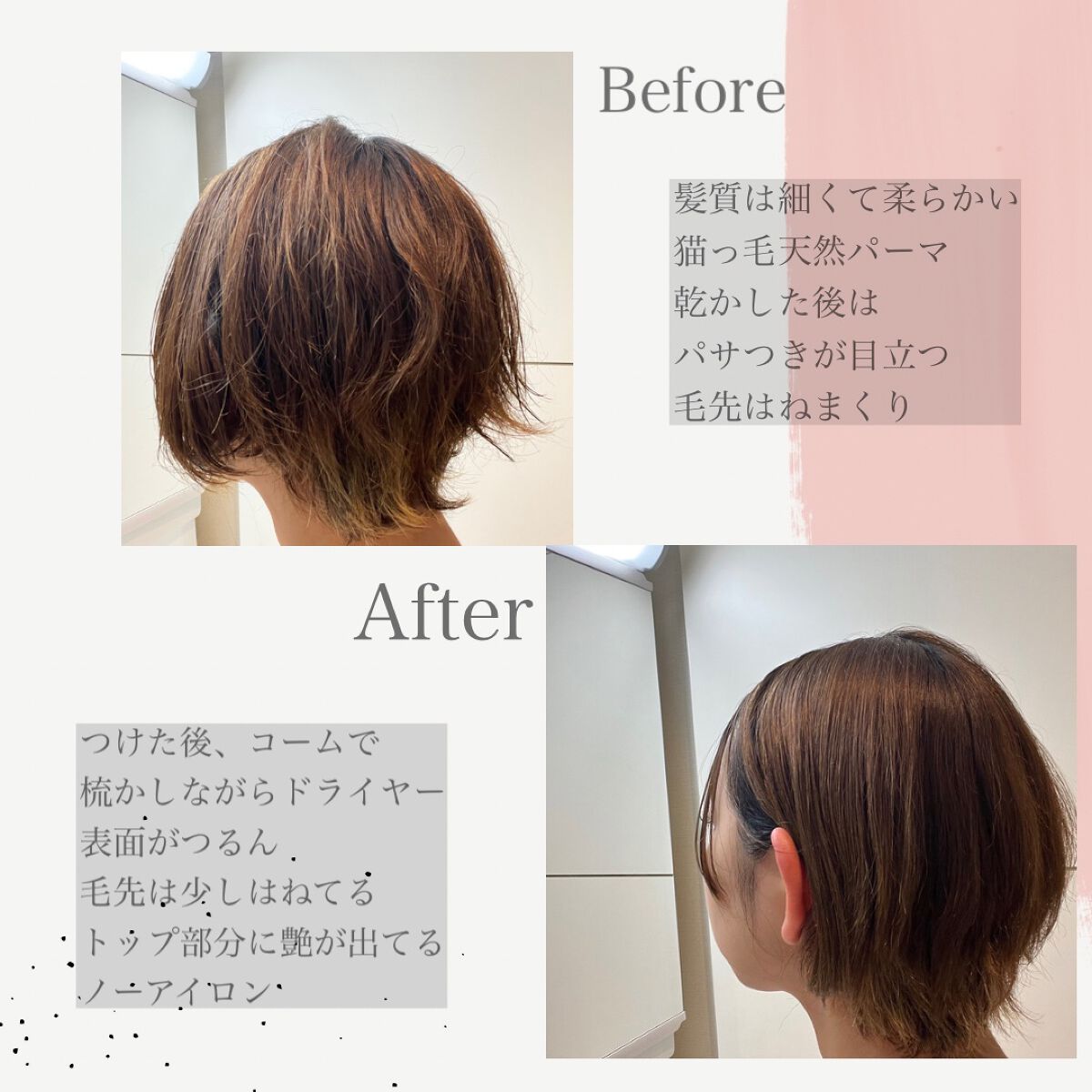 | 毛先だけじゃなく、髪全体に使えます🥰 自然にまとまって、ツヤっとした髪に✨ | 詳細を見る | ||