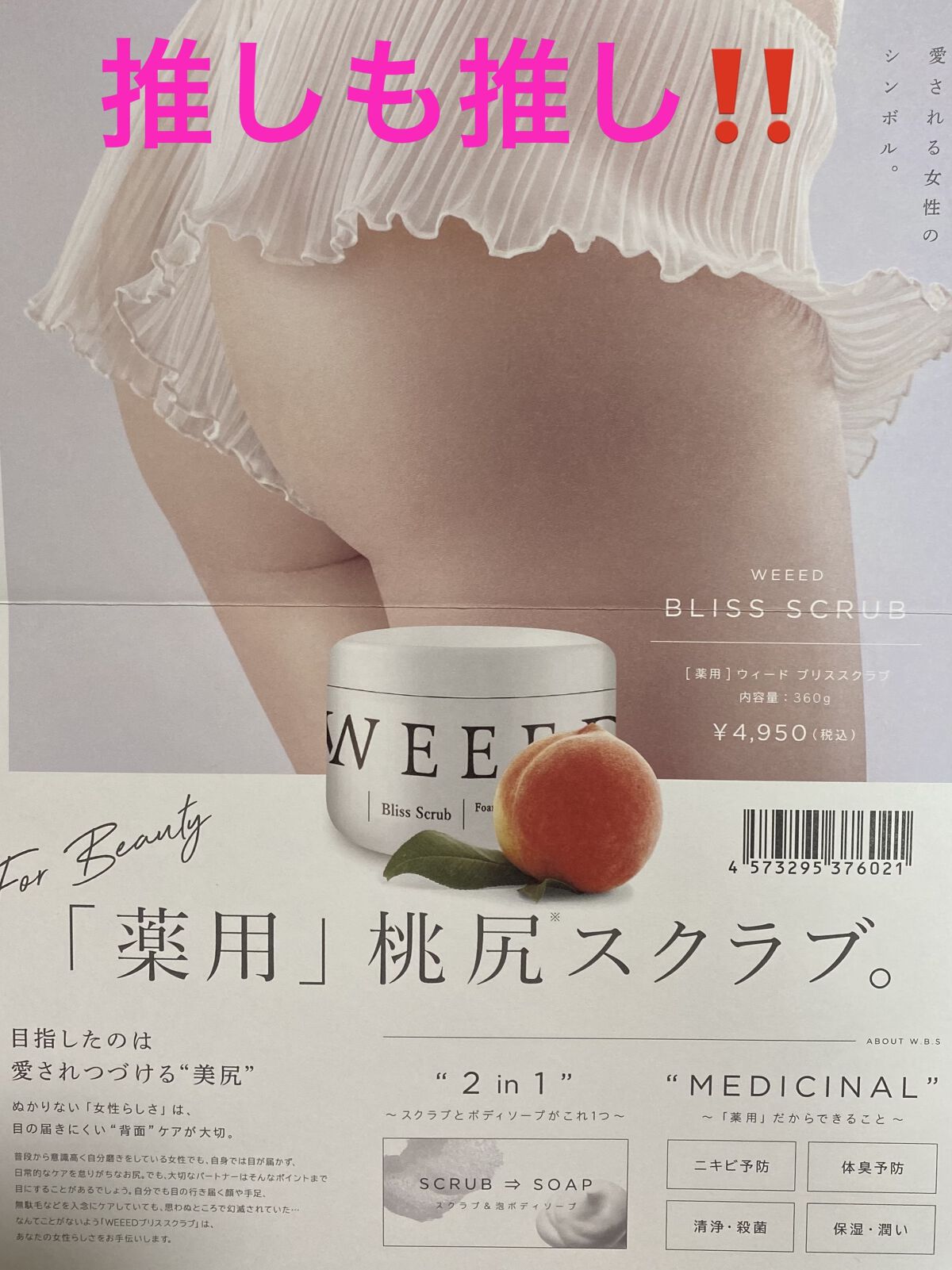WEEED@weeed__official✔︎BlissScrub薬用桃尻スクラブは薬用だからたくさん効果が…🍑〈効果〉⚪️ニキビ予防⚪️体臭予防⚪️清浄・殺菌⚪️保湿・潤い〈使い方〉2wayの使い方があって…①スクラブで黒ずみつるつるケア②...