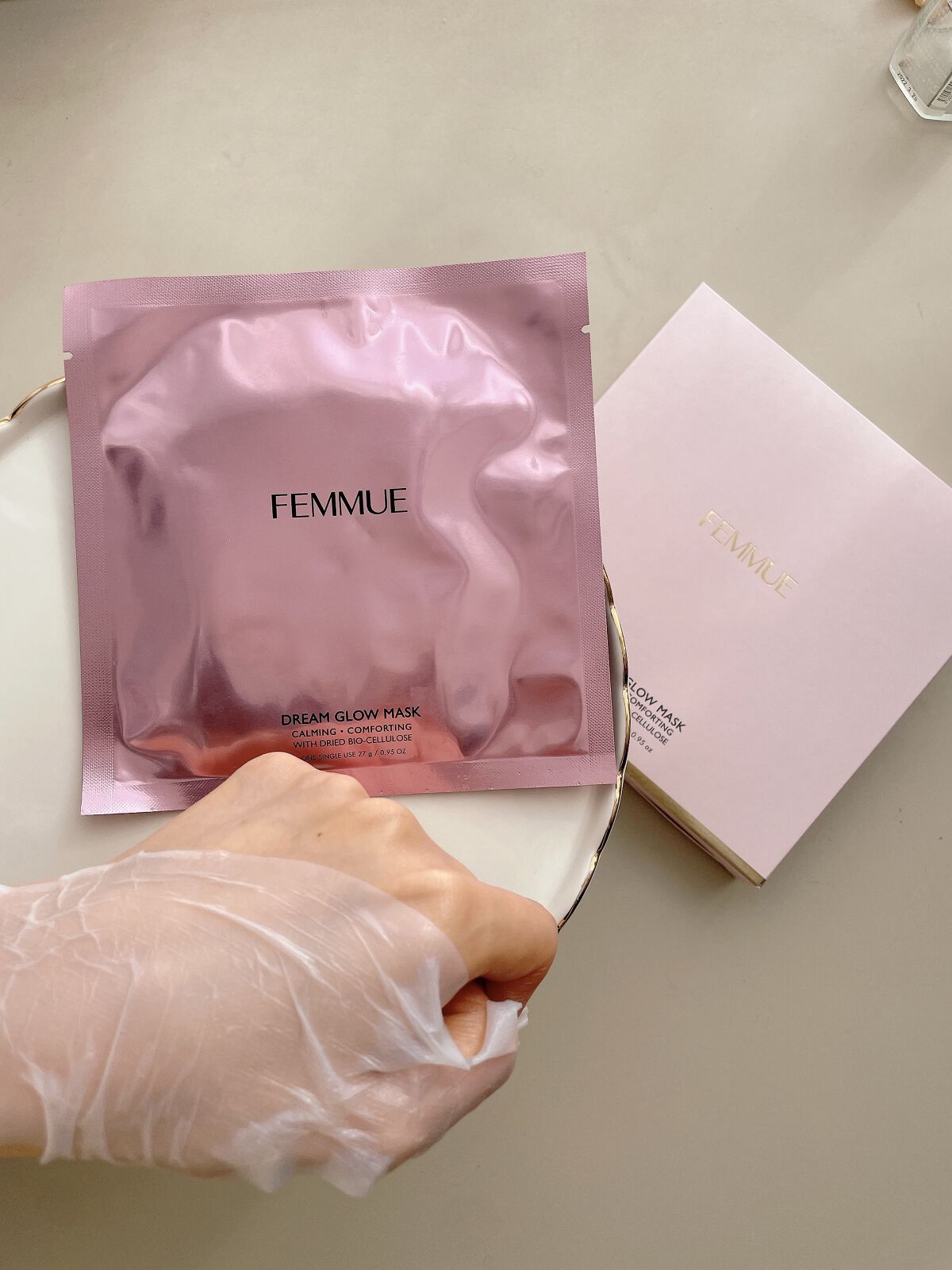 FEMMUEのDREAMGLOWMASK🫧ミルクっぽい美容液が染み込んだトゥルトゥルな質感のシートで、めちゃくちゃ密着してくれます!結論から言うと、保湿力すごすぎて感動、、、こりゃプレゼントでもらったら嬉しい🥹ちょっとシートが固めなので、口周...
