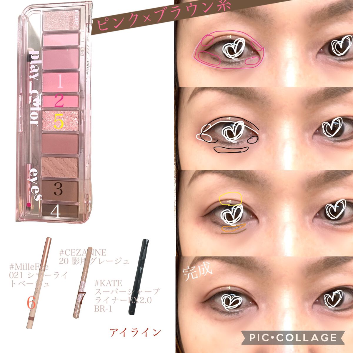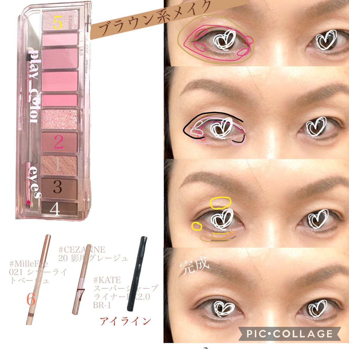 - 肌なじみの良い、鮮やかな発色で目元を華やかに彩る捨て色なしの10色アイシャドウパレット 異なる3種のテクスチャーを自由に組み合わせて、グラデーションも思いのままに。 NEW 2023.4 ・肌トーンにあう配色を詰め込んだトレンドカラー 肌トーンに合わせて、自分に似合うトレンドカラーが楽しめる♡ パーソナルカラー×トレンドカラーの掛け合わせパレットで、デイリーメイクもスペシャルメイクも気分にあわせてなりたい自分に! ・むにゅっとジェル質感ラメで高密着、煌めく目元 パレットの中でもポイントとなる大きめ粒子のラメは、ジェルのような新質感で落ちにくく肌にぴったりと密着します。キラキラとした目元をキープします。 ・使うカラーは大きめに!リアル捨て色なしパレット ベースやラメのよく使うカラーと締め色や濃い色等の減りが少ないカラーを異なるサイズで詰め込んだ、リアル捨て色なしパレット! <使用方法> 付属のデュアルシャドウブラシでベースカラーをまぶた全体に塗り広げます。細いブラシでグラデーションや目尻、アイライン、涙袋などのポイントカラーをのせて仕上げます。
