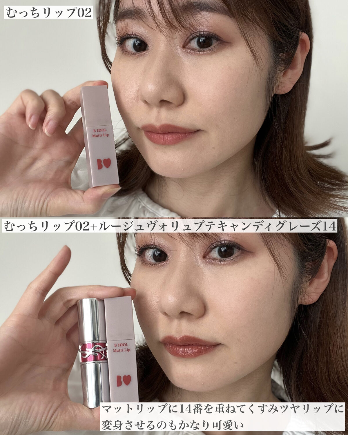 ヌーディでちょっと大人だけどちゅるんとしてて、あざとさもある。 手で見た色とはまた違う色に見える。リップに塗った時の色がほんと好き。 保湿感もあるのでリップクリーム要らずなリップ。