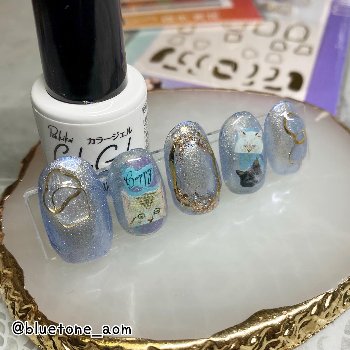 ラメがしっかりしてるし クリアカラーが入ってるから オーロラパウダー無しでも 充分キラキラしました! 反射強めのフィルムなので 実物はもっと うるうるとキラキラが強いです! ビー玉みたい🥺 ネイルシール長持ちさせたいけど ちょっと飽きてきたな〜って時とかに 全然違った印象になるのでオススメです! Seriaのベースジェル 本当にうるうるネイルしやすいので オススメしたい🙆♀️