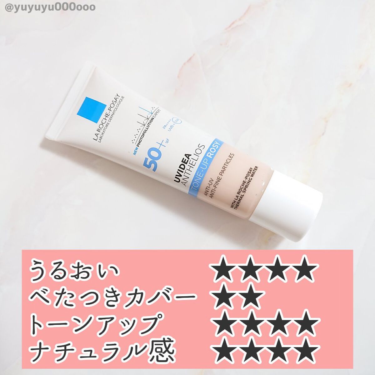 保湿力高めの下地が大好きなのでラロッシュポゼの下地はお気に入りでよく使います✨ かなりトーンアップします🤍自分は肌が黄ぐすみしやすいのでこれくらいトーンアップしてくれた方が時間がたった時にちょうどよくなります✨ 1番のお気に入りはローズです🌹肌から浮かない程よいトーンアップとほんのり血色感がよくなる所が大好きです🥰