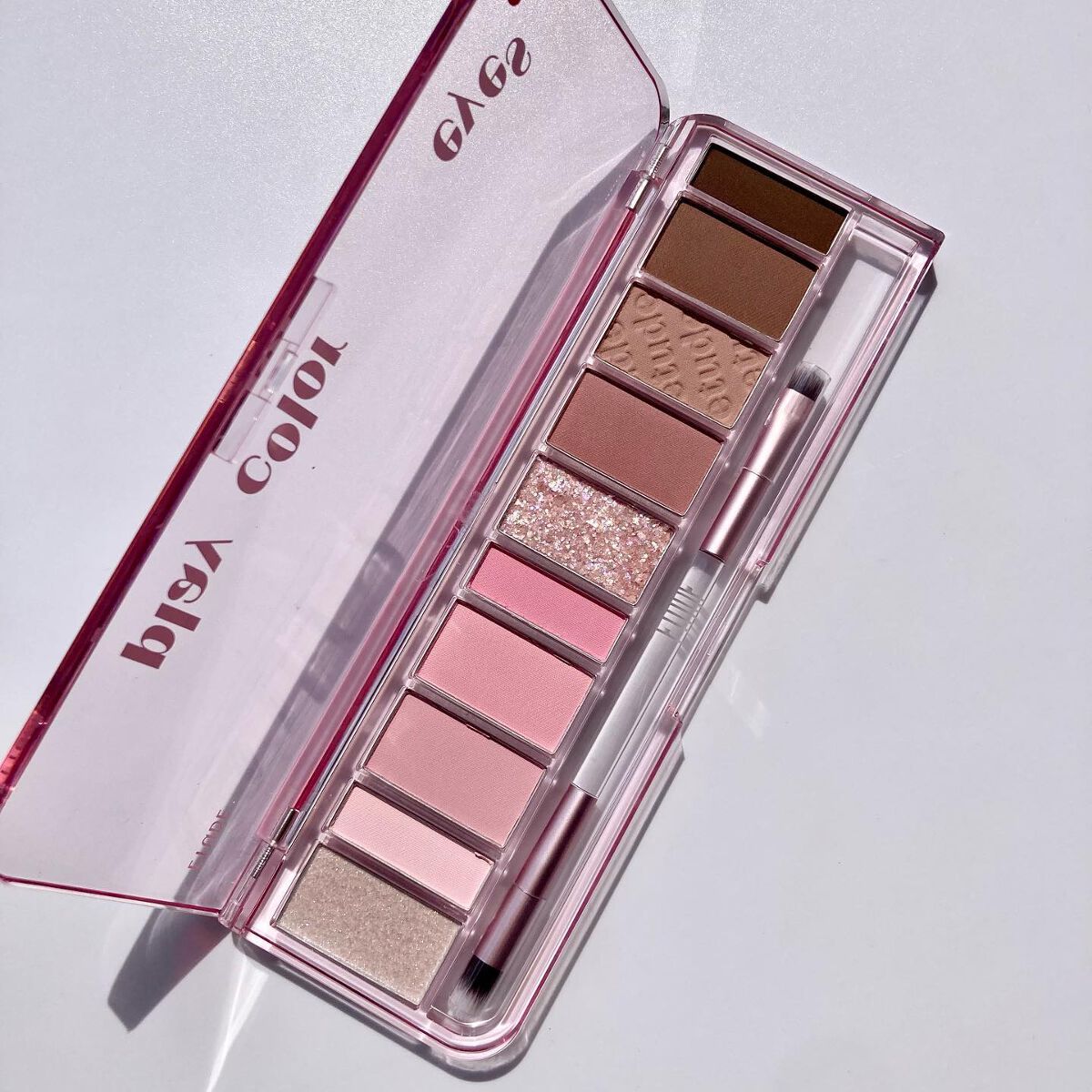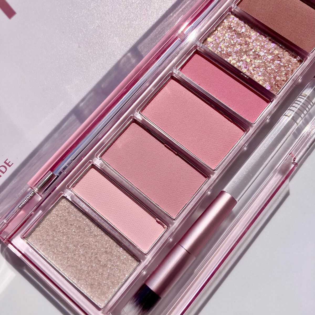 ロゼピンク系のカラーが配色されたパレット! マットもラメも入ってるし、10色もあると色々なメイク出来ると思います。 使いやすい感じのナチュラルな色味の配色になっててほわっとしたピンクメイクになって可愛い🩷 このシリーズほんと可愛いし、持ってないパレットも欲しいな〜