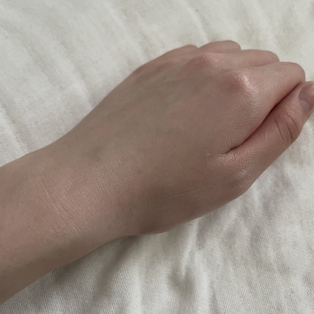 手にとってみた時のテクスチャーは既存のウォータースプラッシュサンクリームと比べると若干重めに感じましたが、肌に馴染ませると変わらず伸びが良いです! まず試しに手に塗ってみた時点で自然なツヤ感とトーンアップ効果に感動✨✨ファンデせずにこれだけでも肌を綺麗に見せてくれます! もちろん顔にも使ってみましたが、セラミド、ペプチド配合で保湿力もアップしたとのことでしたが、朝塗って夜まで乾燥が気になりませんでした! 皮膚科テスト完了、ヴィーガン認証もされているので、敏感肌でも安心して使えます。 そして、既存のタイプに比べてマイルドな香りになった気がします!私は前の香りも好きでしたが、こちらはさらにふんわりとやさしく香ります。