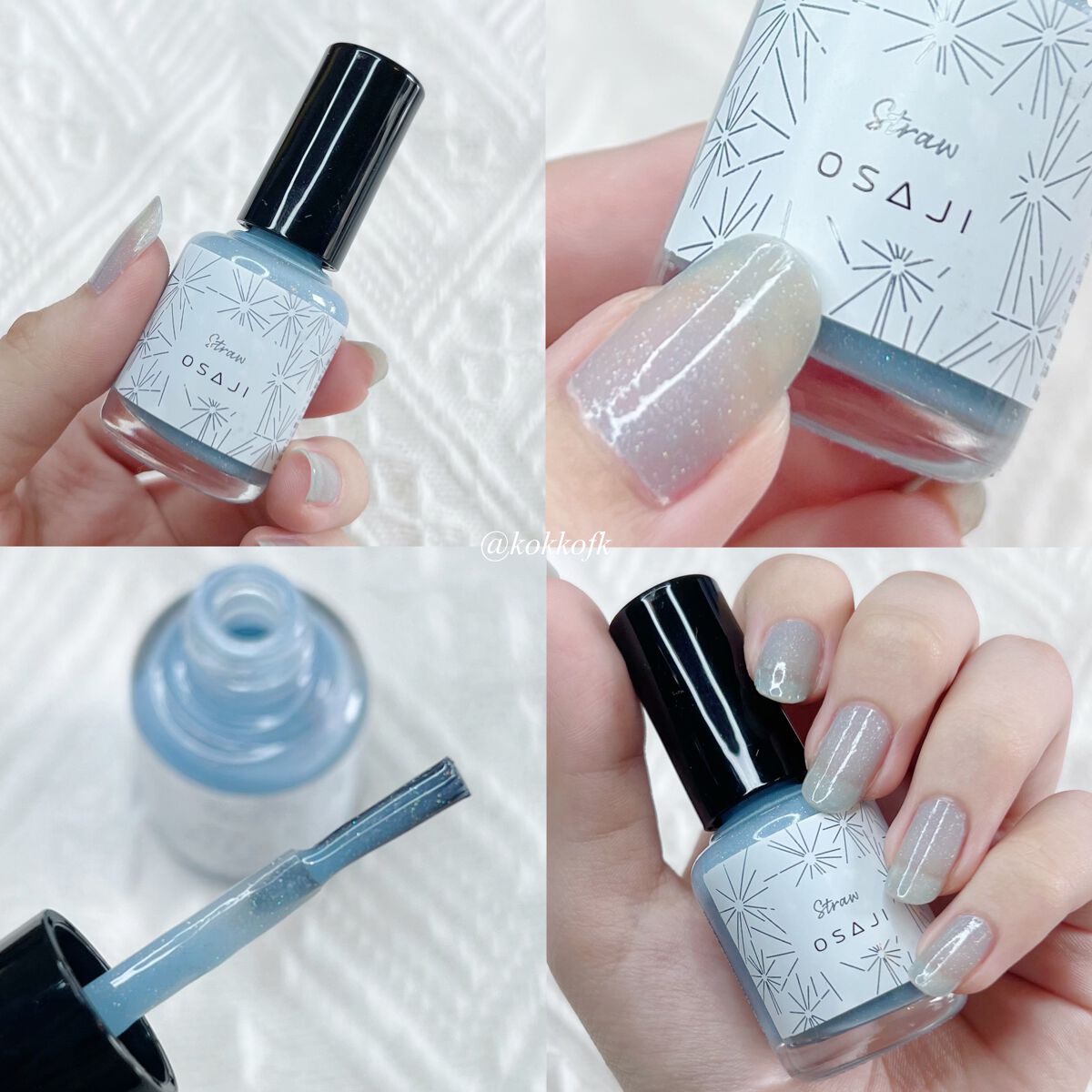 透け感があるのでかなり透明感がでるのが嬉しい💕 ラメも結構入ってるので、チラチラ輝いてテンションあがります😍 透け発色でムラになりにくく、とにかくオサジのネイルは色と質感の合わせが可愛すぎて癖になる!!! ついつい集めちゃうお気に入りシリーズのネイルです🥰