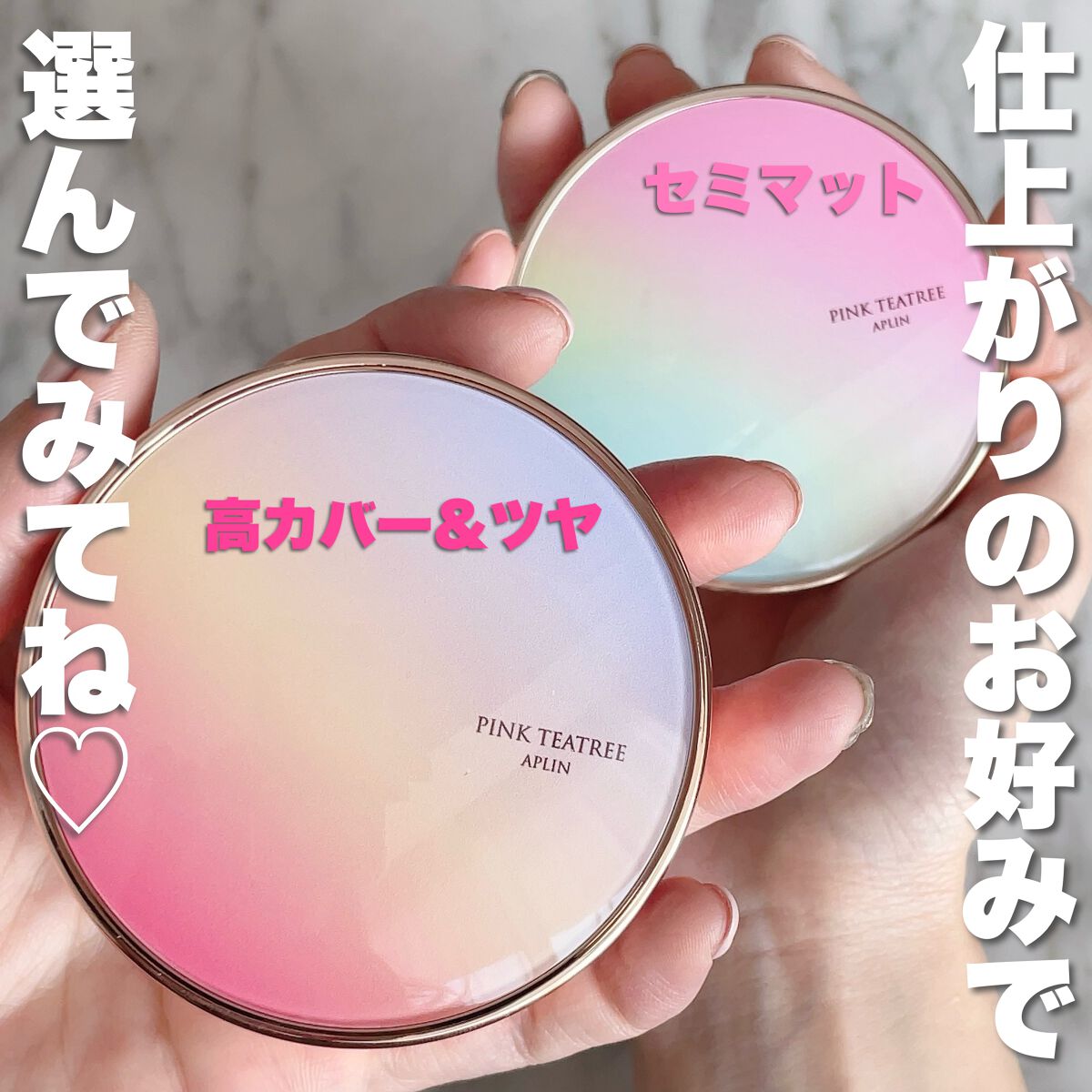 APLIN ピンクティーツリーカバークッション 21号ライトベージュ 2,490円(税込) 少量でよく伸びてハイカバー! 赤みやくすみをしっかりカバ一できるのに、厚塗り感のないなめらかな仕上がり♡ ハイカバーなのにナチュラルなツヤ感とサラッとしつつ、乾燥崩れしにくい仕上がりに感動します!!