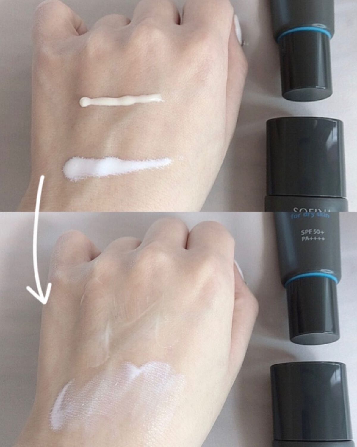 水分補給し続けるUV防御ベール 角層とほぼ同じ厚さのUV防御ベールがたっぷりの水分をかかえ1日中水分補給しつづけます! サラっとした軽やかな使い心地で、塗った後のお肌がサラサラなのに、うるおった仕上がりに☺️ 季節や肌状態・部分によって使い分けても良いと思います🙆♀️