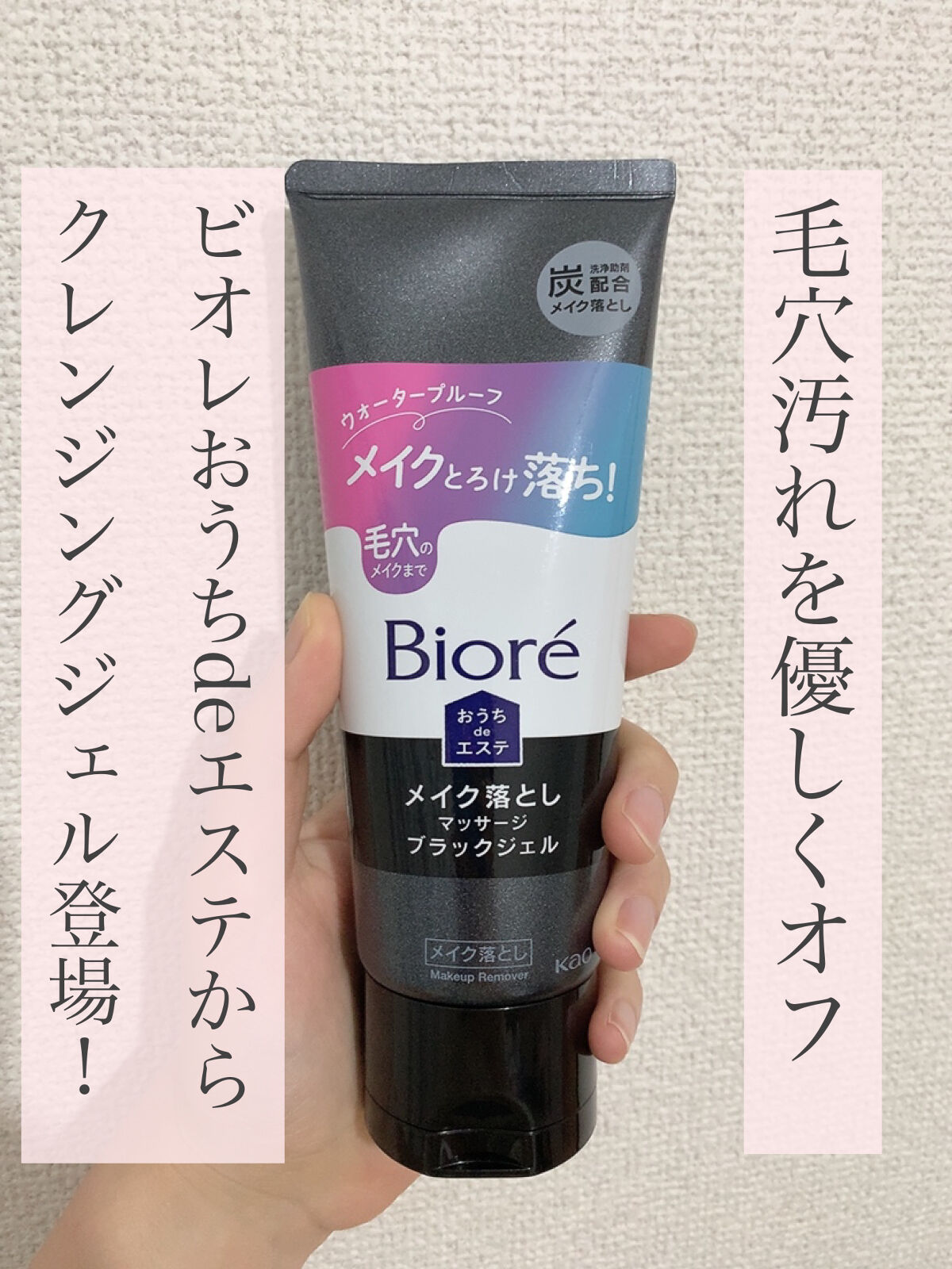 - 毛穴ケアに人気のおうちdeエステからメイク落としが発売! 炭(洗浄助剤)配合ディープクレンジング処方のブラックジェルで毛穴に入り込んだメイク汚れまでしっかり溶かし落とす! つっぱりにくく、しっとりつるりとした洗いあがり。 毎日のクレンジングがエステに変わる! ◆ウォータープルーフマスカラまで落とせます。 ◆摩擦低減*設計で肌なじみのいいやわらかいジェルタイプ ◆手や顔がぬれていても使えます。 ◆毛穴が開きやすいお風呂場での使用がおすすめです。 ◆すすぎ後の洗顔はいりません。 ◆気分リラックス フレッシュフローラルの香り *ビオレしっかりクリアジェルとの比較