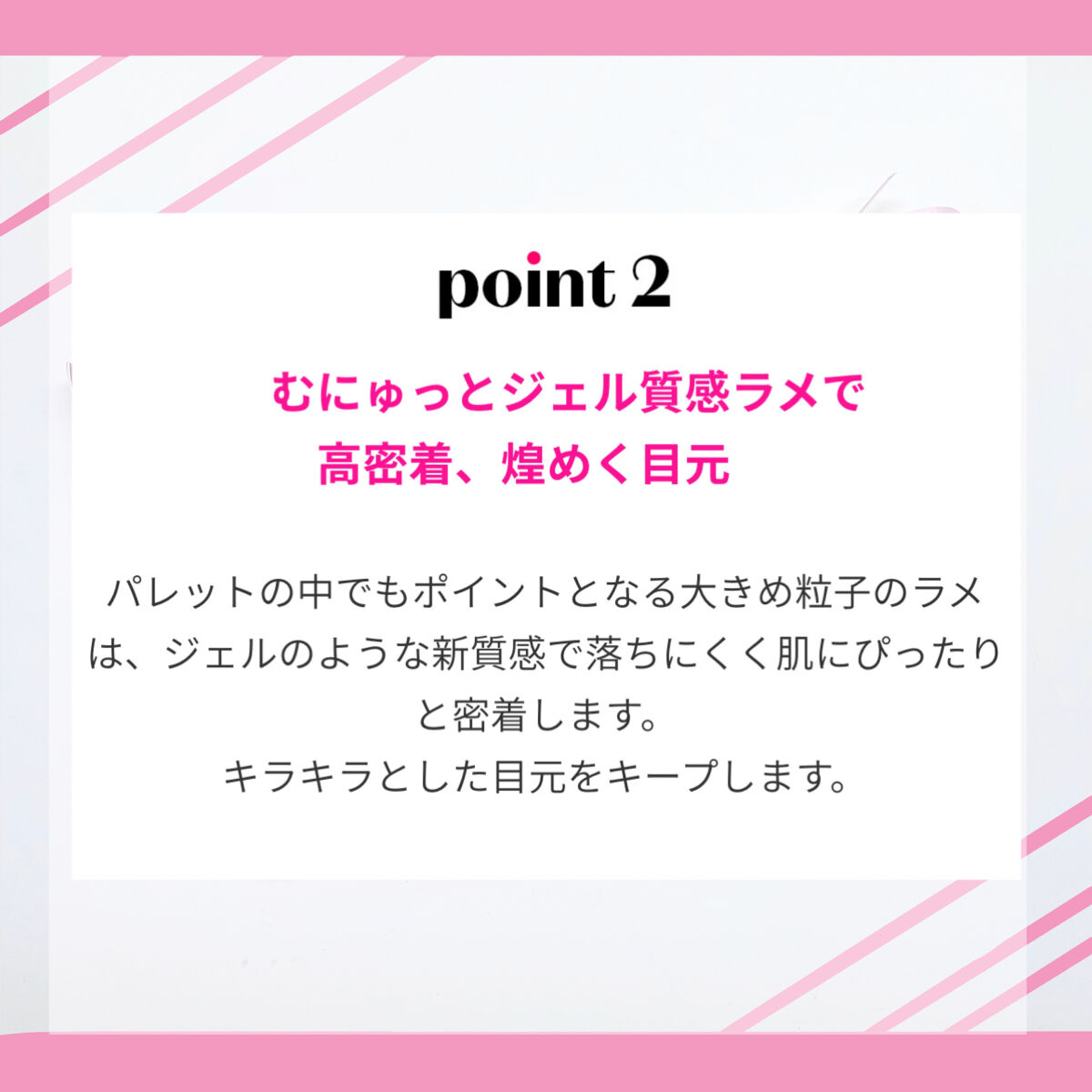 | アイシャドウパレットランキング第8位 | 時間が経っても キッラキラな艶・ラメ感が続く。 色がくすんだりも気にならないし 塗ったあとに何回も鏡見てしまう | 詳細を見る |