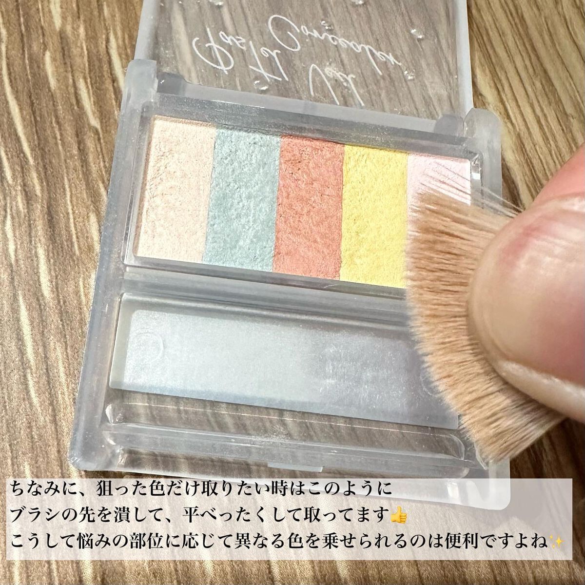 - カラーのヴェールでふわっとボカす パウダータイプのコンシーラー カラーを混ぜて、クマや頬の赤みなどのお悩みを ふわっとボカして素肌っぽい仕上がりに♡ お悩みによってブレンドするバランスを変えたり、単色使いすることで お肌に合った色味に調整できます。