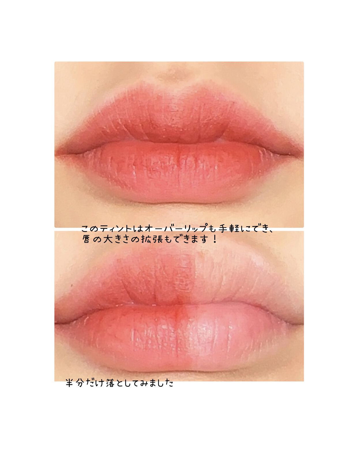 🙆♀️密着力、発色◎ 唇にはもちろんですが、オーバー気味に塗る場合は どうしても肌にも塗らないといけませんが、オーバ ー気味に肌に塗ってもしっかり密着で発色してくれ ました。 🙆♀️サラサラのテクスチャー リップのベタベタ感が苦手な方におすすめ! サラサラだからと言って乾燥感はないです。 🙆♀️持続力◎ マスクにもつきにくく、飲み物を飲んでもすぐに色 落ちすることがなかったです。 🙆♀️チップが大きいから均一に塗れる