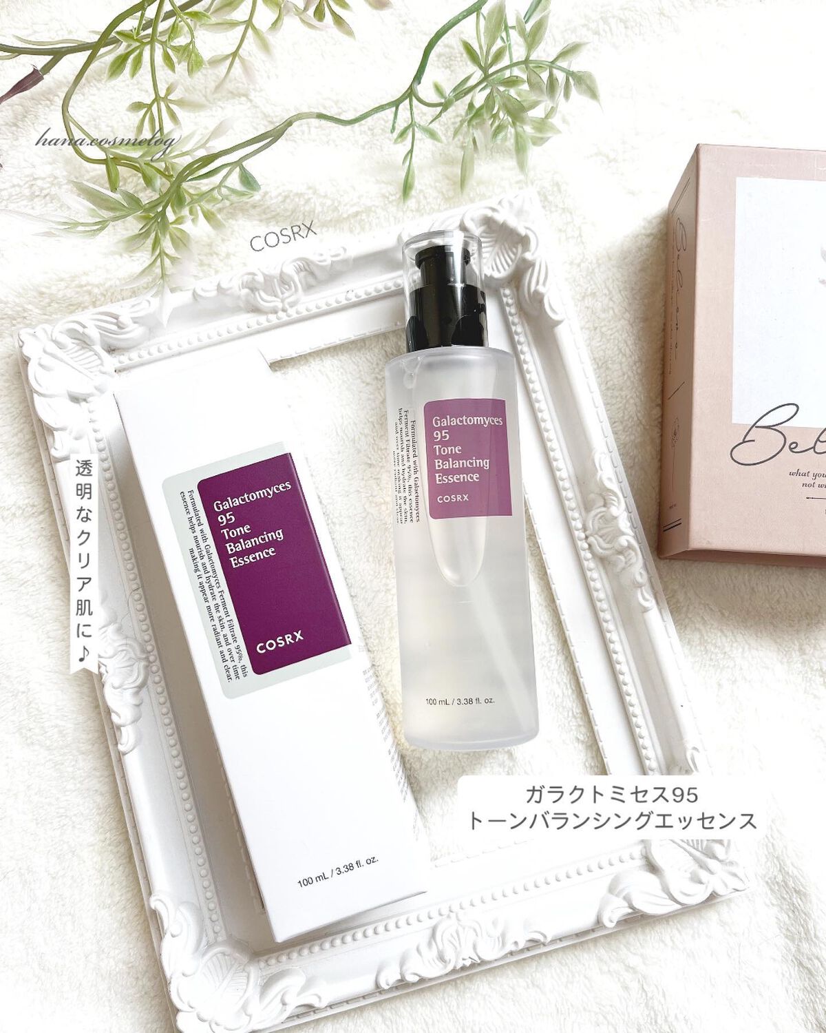 COSRXのガラクトミセス95トーンバランシングエッセンス🤍⠀少しとろみ系のテクスチャーで肌なじみ◎⠀私は4プッシュとたっぷり使ってる🙌🏻💗⠀少しでも肌の透明感アップするといいな🥺⠀化粧水だけどストックたくさんあるので導入として使う予定✌️✨...