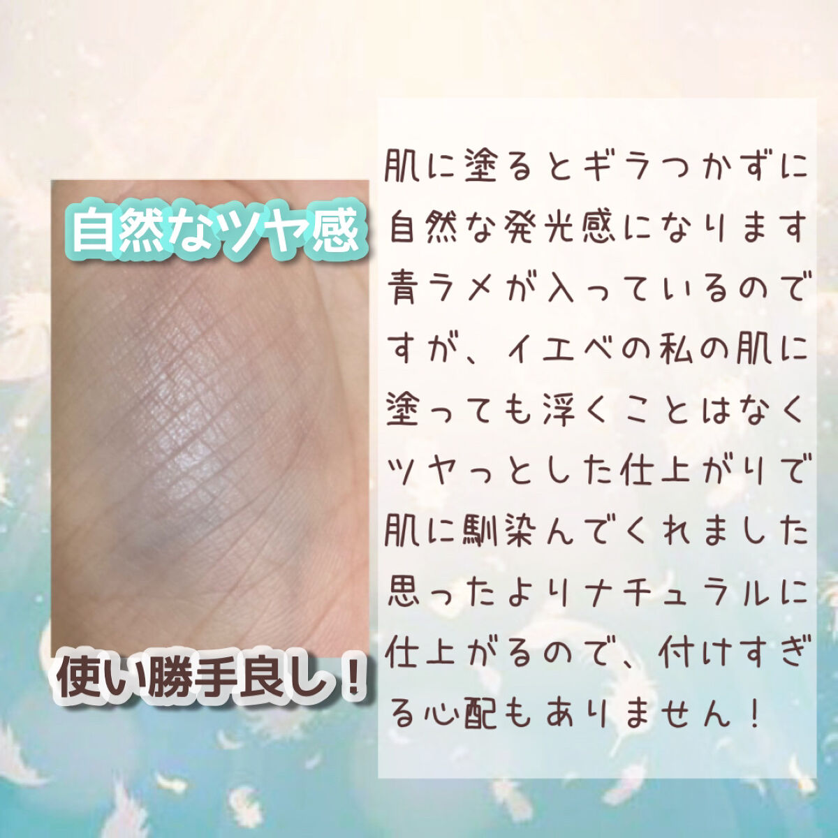 パケが先ず可愛い♡ 開いても天使がいて可愛い👼🏻♡ ホワイト系のハイライト持ってないし欲しいなーと思い立って探して行き着いた先がこれ✨ 届いて塗ってみたら、レビュー通りパール系でギラつかず安心☺️💕