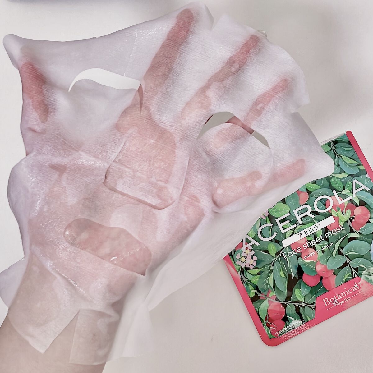 香りはアセロラの甘いいい香りがします。シートマスクは厚みがありかなりしっかりした質感なので密着感は少し弱めです。 さっぱりした使い心地でした。保湿してくれて軽い使用感ですが潤いのある肌になりました。 ふんわり香る甘いアセロラの香りはあまり残らないので使いやすかったです。