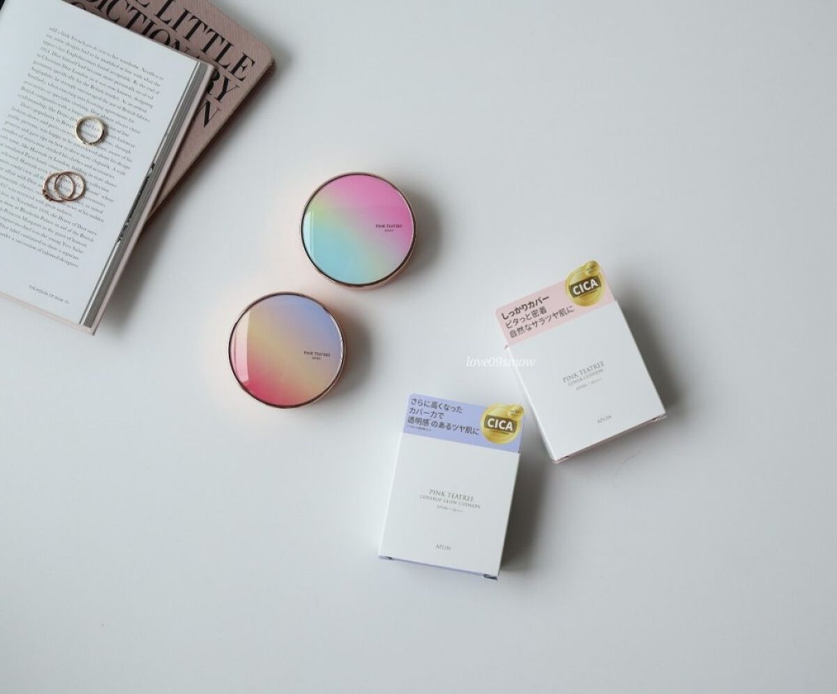 APLIN ピンクティーツリーカバークッション 21号ライトベージュ 2,490円(税込) 少量でよく伸びてハイカバー! 赤みやくすみをしっかりカバ一できるのに、厚塗り感のないなめらかな仕上がり♡ ハイカバーなのにナチュラルなツヤ感とサラッとしつつ、乾燥崩れしにくい仕上がりに感動します!!