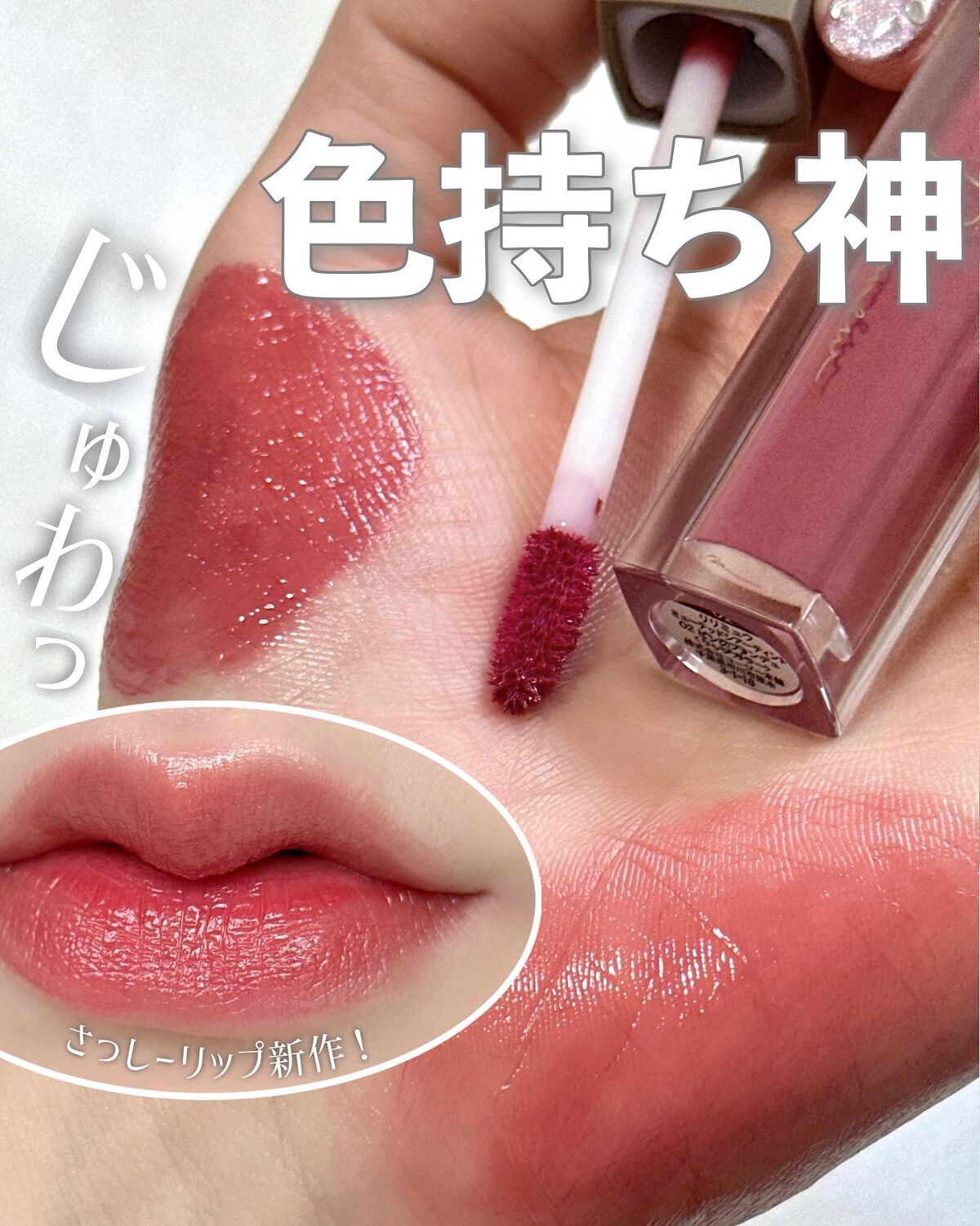 - みずみずしくツヤめく透け発色リップ べたつかずさらっと軽い塗り心地 長時間落ちにくいオイルinウォーターティント処方 ●保湿美容液成分:ハチミツ・ヒアルロン酸・ローズマリー葉エキス配合