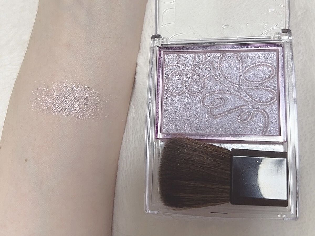 透明感あふれるライラックカラーの輝きをふんわり足してくれるニュアンサー✨ 色味も輝きも強すぎないのでどんなチークとも合わせやすいと思います スウォッチは付属のブラシで塗りました 動画は照明の当たる所で撮影しました