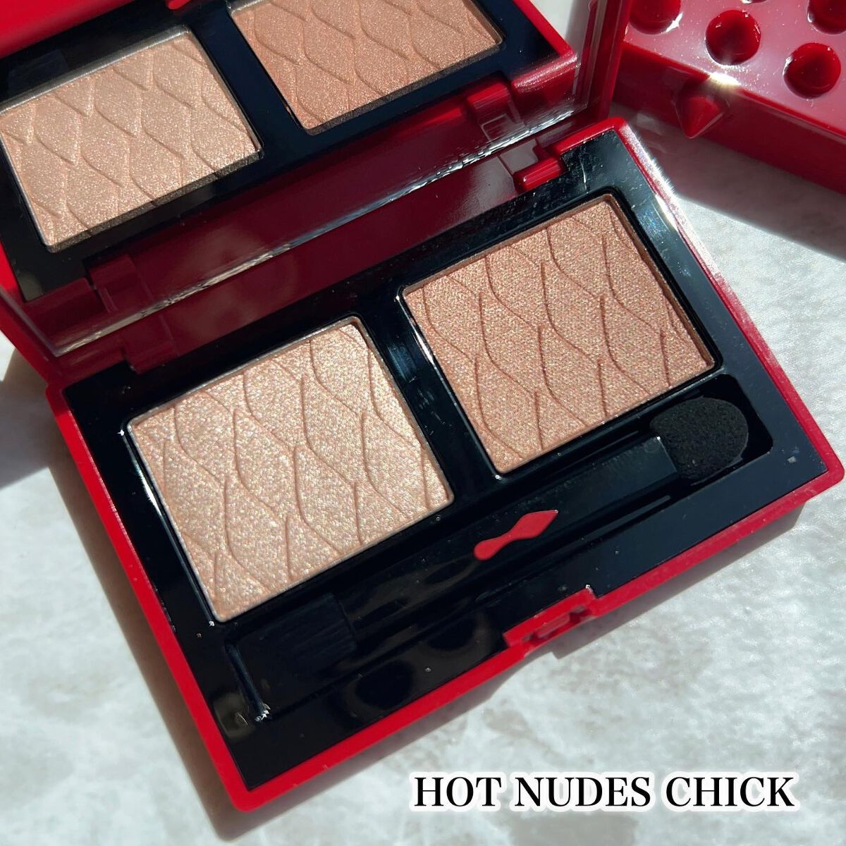 今回の新色は"まぶたに濡れたような光沢を放つ艶、光を操る立体感をプラスしリュクスなまなざしを叶えてくれる"というプリズムフォーミュラ。 確かにいつもとはちょっと違う…良いですこれ🫶❤️ ヌメッと面で光るようなツヤ感✨ テクスチャーは刻印ありタイプ、ツヤはクリームタイプに近いと思います🥰 要は刻印ありとクリームの良いとこ取りですね! ゴールドと柔らかいレッドの組み合わせ。アプレスキーとエレクトリックチェリーの中間のような色合い🤔 ゴールドとピーチカラー。今回の3色の中では一番黄みが強い。 青みがかったローズが可愛い。ぱっと見はわからないけど左上にみんな大好き青ラメが…!!