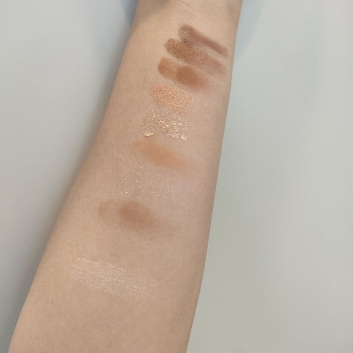- 肌なじみの良い、鮮やかな発色で目元を華やかに彩る捨て色なしの10色アイシャドウパレット 異なる3種のテクスチャーを自由に組み合わせて、グラデーションも思いのままに。 NEW 2023.4 ・肌トーンにあう配色を詰め込んだトレンドカラー 肌トーンに合わせて、自分に似合うトレンドカラーが楽しめる♡ パーソナルカラー×トレンドカラーの掛け合わせパレットで、デイリーメイクもスペシャルメイクも気分にあわせてなりたい自分に! ・むにゅっとジェル質感ラメで高密着、煌めく目元 パレットの中でもポイントとなる大きめ粒子のラメは、ジェルのような新質感で落ちにくく肌にぴったりと密着します。キラキラとした目元をキープします。 ・使うカラーは大きめに!リアル捨て色なしパレット ベースやラメのよく使うカラーと締め色や濃い色等の減りが少ないカラーを異なるサイズで詰め込んだ、リアル捨て色なしパレット! <使用方法> 付属のデュアルシャドウブラシでベースカラーをまぶた全体に塗り広げます。細いブラシでグラデーションや目尻、アイライン、涙袋などのポイントカラーをのせて仕上げます。