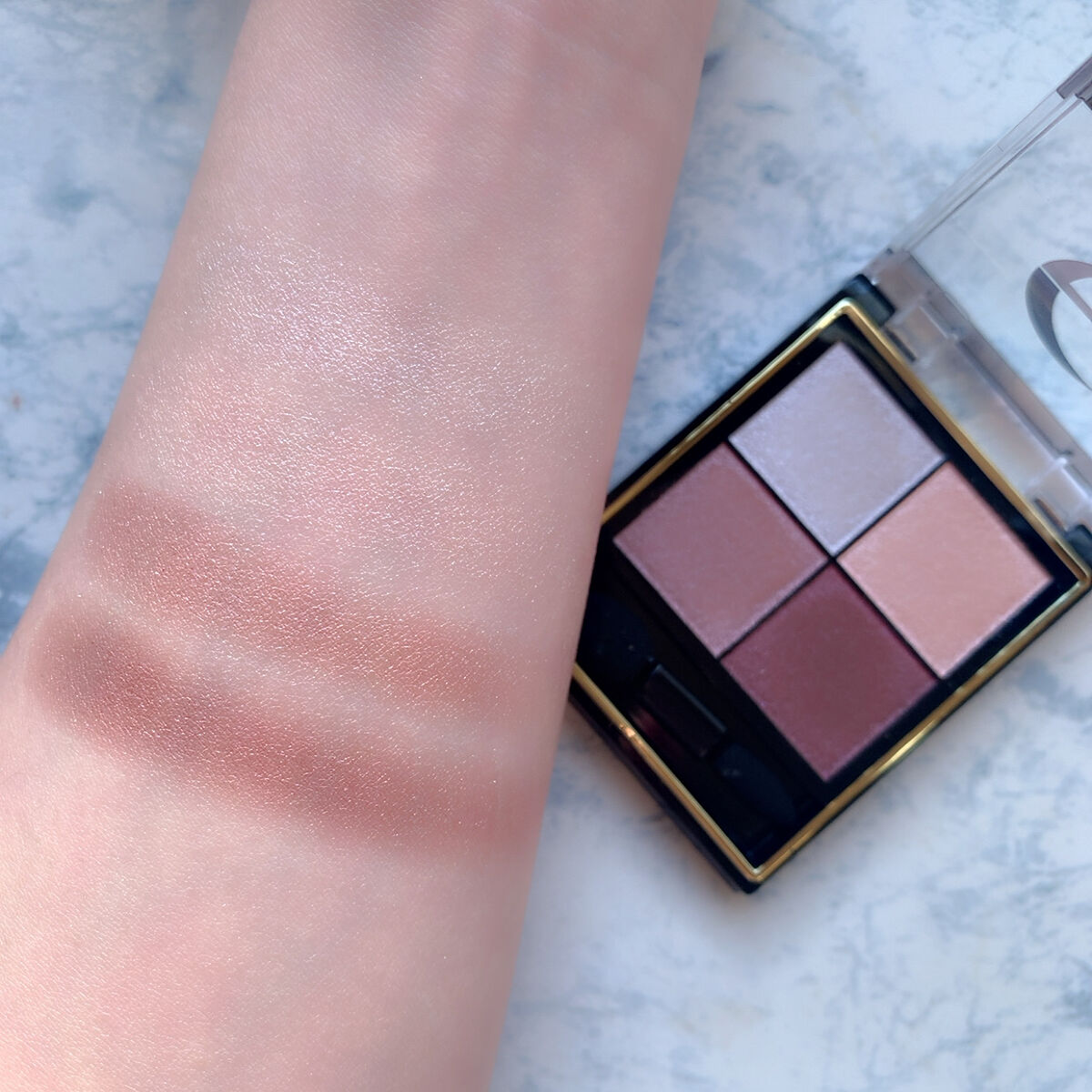 最近アイシャドウはマット系を使っていて久しぶりにパール系を使いました。今回は左下の赤紫?を二重幅に使いました。淡く優しめのカラーでパール感も控えめでよかったです(人´∀`*) 個人的に左上の青みカラーの艶感がとても綺麗で気に入りました(人´∀`*)