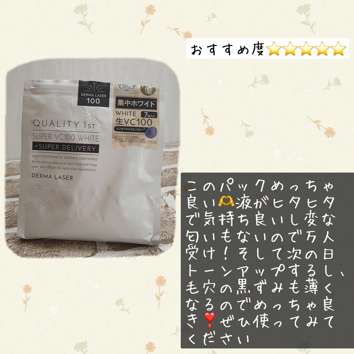 クオリティファーストダーマレーザースーパーVC100ホワイトマスクとーってもよかったです!翌朝肌の調子も良くて、他のマスクもやってみたい✨アゼライン酸配合で毛穴きっとしてくれそうな♫ニキビにも効果期待できそうな♫クオリティファーストはパックの...