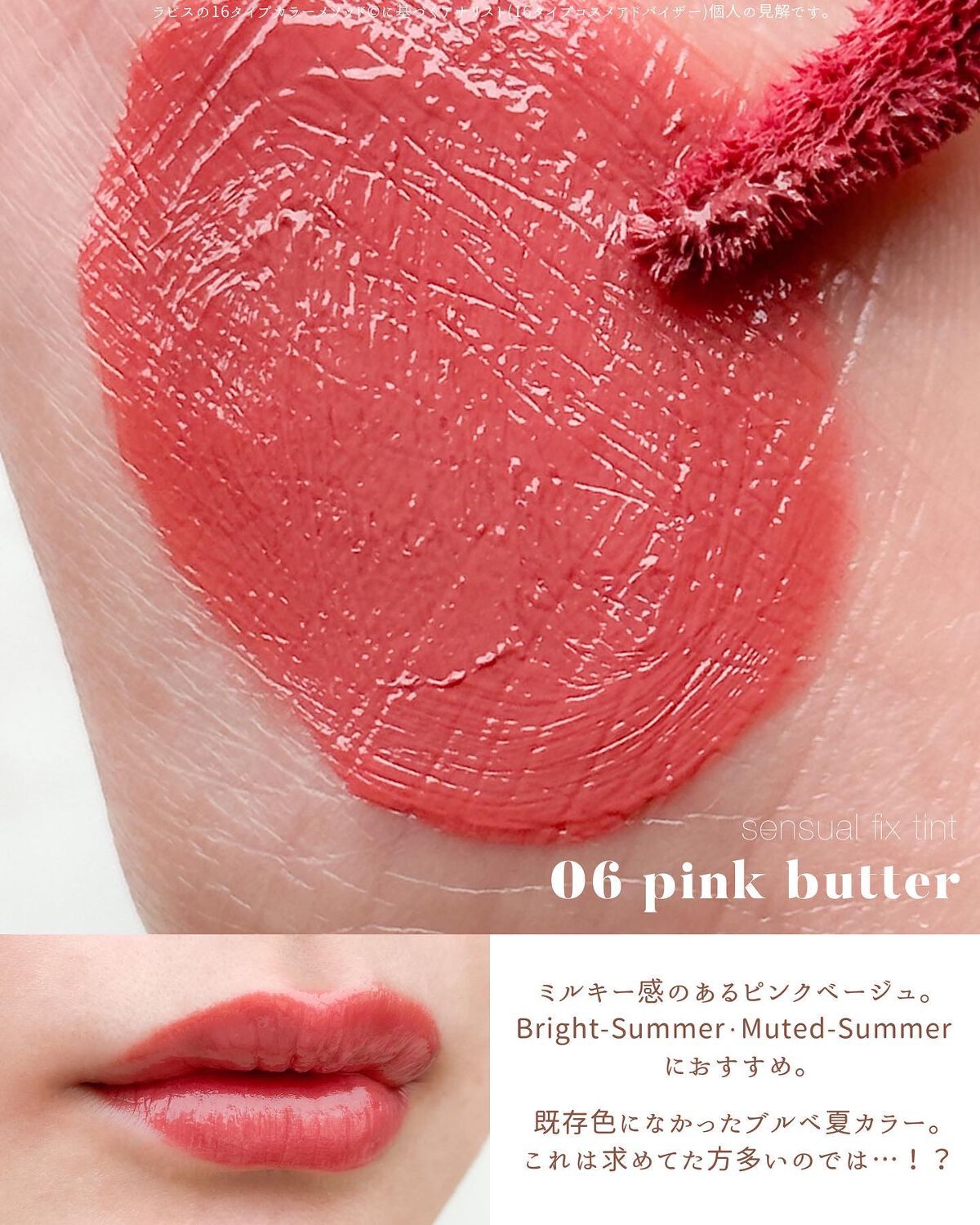 水みたいに軽いツヤツヤな仕上がり。 ベタベタしないし、付けてる感が少ないので快適ですよ✨ 全体的にイエベに寄った色展開です。 もしブルベさんが使うなら03が一番馴染むかな? ウォームスプリングの私は圧倒的に04がお気に入りです〜!! 黄みたっっっぷり🍊 一度ティッシュオフをするとマスクにも付きづらいので是非試してみてください🥰