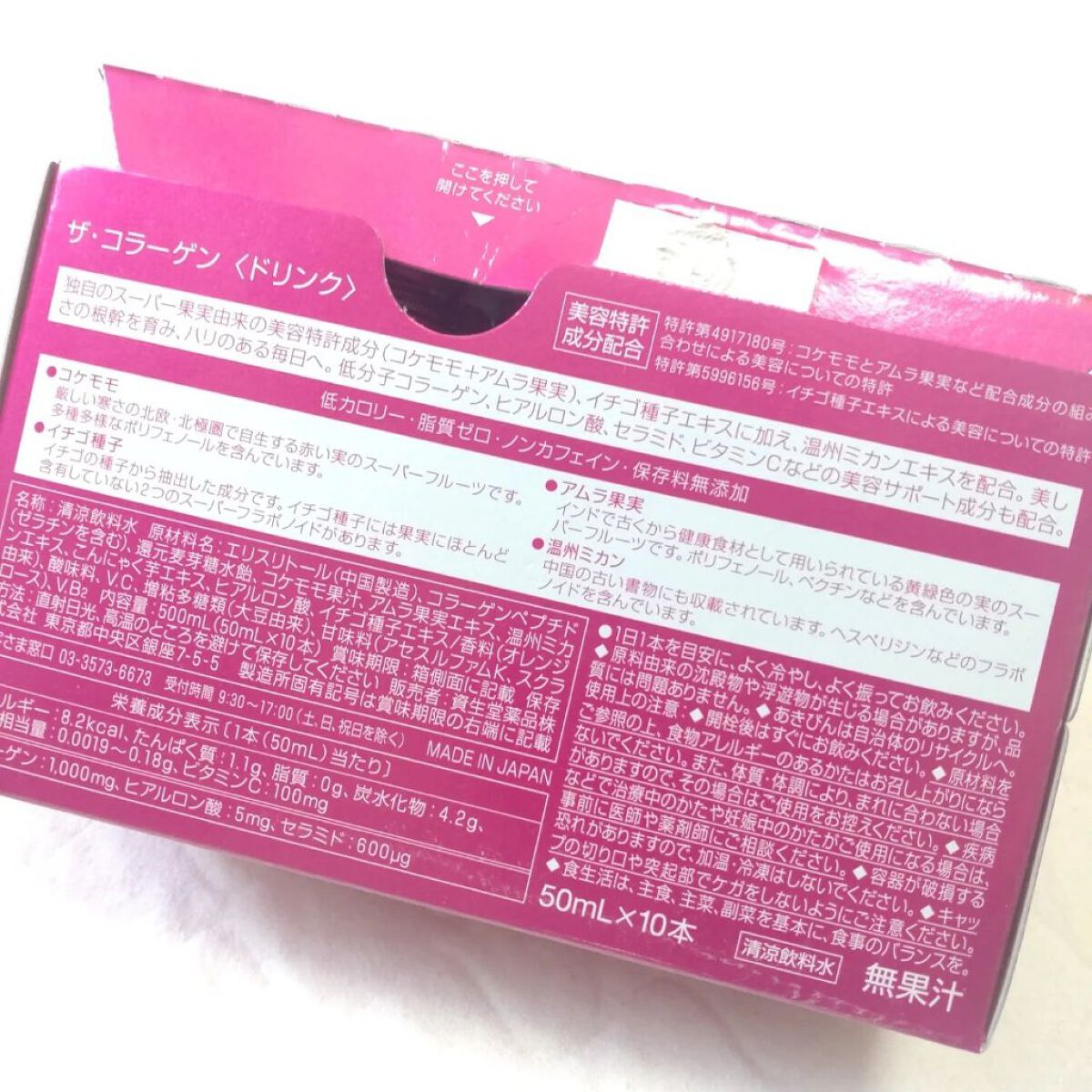 W美容特許成分を含む美容成分が2倍量配合されたコラーゲンドリンクです🍎🍇🍋🍐 カロリー控えめ、ノンカフェイン、脂質ゼロなのでいつでも好きなタイミングに飲めるのが嬉しいです👌🏻 贅沢に10日間飲み続けてみましたが、例年気になる冬の乾燥がいつもよりマシな気がしました🤔