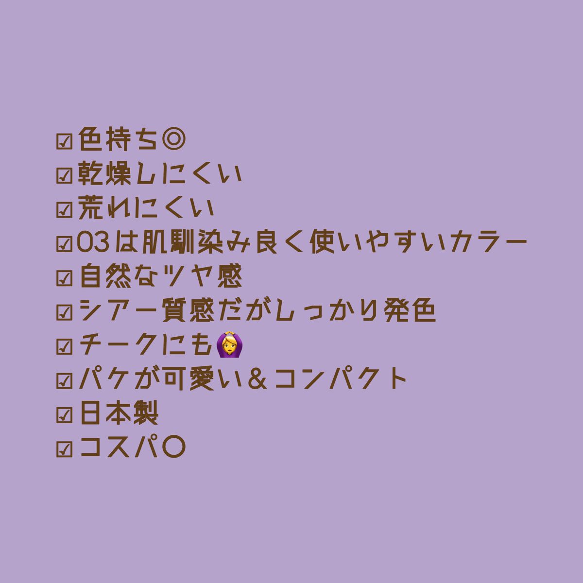 | 口紅・グロス・リップライナーランキング第12位 | シロップのようにとろーりしていて 唇にのせると密着してくれる。じゅわっとした発色とむっちり感が たまらなくよかった⸝⸝⸝♡ | 詳細を見る | |