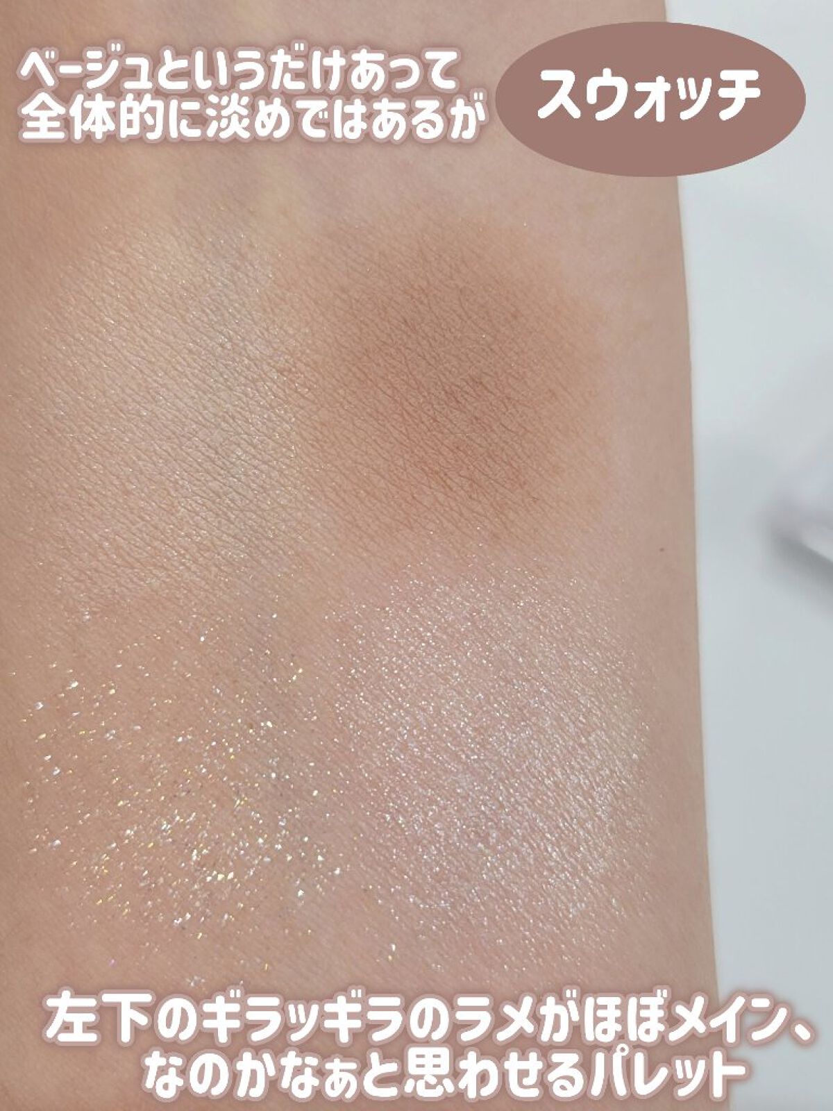 全体のローズ感と粉質もたまらなくいいんですが 左下のハイライトカラー?パールの粉が すんごい涙袋にいいんですよ… パーンとめちゃくちゃ涙袋盛れるけど、 ほんのりピンクがかった白みベージュなので 平成ギャルみたいになるわけではない…と思う ほんとこのハイライトカラーが涙袋に良すぎて いつかここだけ底見えする説…