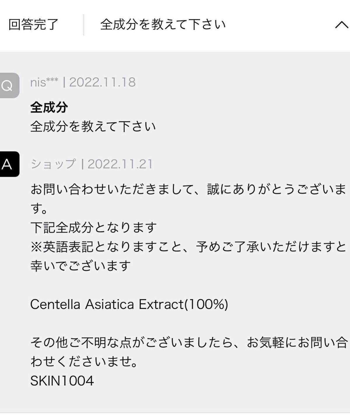 - <55ml> 水、グリセリン、BG、ツボクサエキス、1, 2-ヘキサンジオール、セルロースガム、エチルヘキシルグリセリン <100ml> ツボクサエキス(100%)
