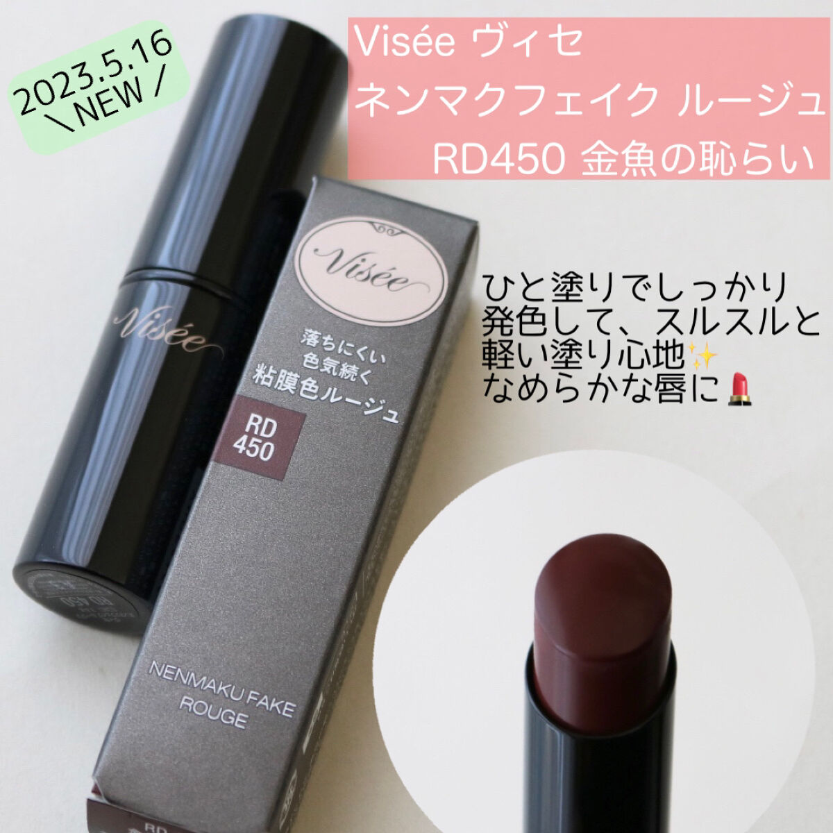 Viséeネンマクフェイクルージュ・RD450金魚の恥らい〜秘めた恋で赤く染まる。 金魚のディープレッド〜名前の通り、金魚の様な黄みと赤み、ブラウンのバランスが最高なレッドカラーのリップ💋ブルベ冬/イエベ秋さんが得意な暗め深みしっかりカラーで...