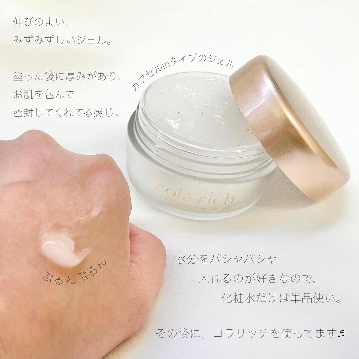 *Thankyou*オールインワンに化粧水をプラスして自分をケアすることで自分の肌も心も大切にできているようでスキンケアタイムが満たされた時間になりました。キューサイ様よりコラリッチEXブライトニングリフトジェルをいただきました。ハリ弾力×集...